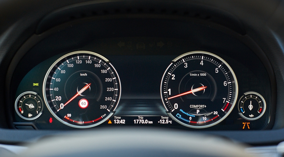 Специфика питерской трассы знакома многим: несметное число населенных пунктов. Скоростной режим меняется по несколько раз в минуту. И тут как нельзя кстати пришлась проекция на лобовое стекло: BMW умеет распознавать знаки и незамедлительно отображает их прямо перед глазами водителя. Причем электроника не только считывает знаки на обочине оптическим сенсором, но и знает границы населенных пунктов благодаря карте в навигационной системе! В городе — бесполезная функция, которую, скорее всего, водитель отключит. На трассе — супер!