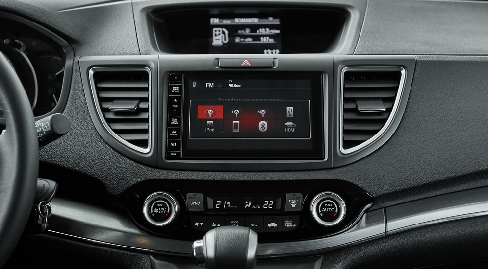 Добавлять функции и приложения теоретически можно через Honda App Store, но пока эта функция не работает. Обещают, что уже скоро «все будет». Зато добрыми людьми из российского представительства Honda уже установлен сервис Яндекс.Пробки – и уже за эту возможность и от меня, и от будущих владельцев CR-V японцам низкий поклон. Правда, для корректной работы нужно постоянное соединение с интернетом. Логичный ход – карманный Wi-Fi роутер с sim-картой, спрятанный в подлокотник, постоянно подключенный в USB-порт. Именно такой и был в тестовом автомобиле. Но, увы, привычной по смартфонам отзывчивости интерфейса «пробочного» сервиса нет: программа откровенно «тормозит». Пользоваться можно, но иногда система подвисает и не может понять, где находится. Окей, первый блин не комом, но до идеала далеко.