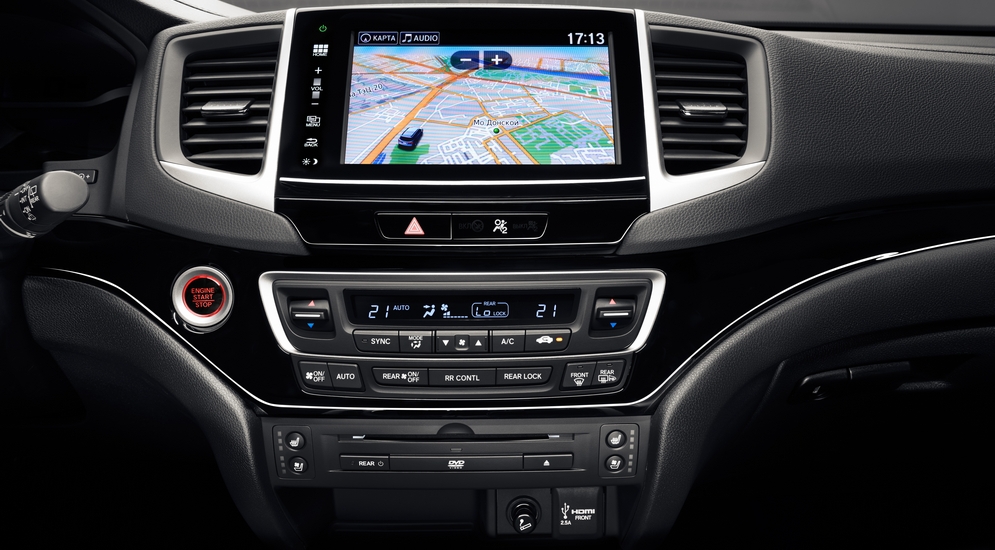 Новый Honda Pilot по ощущениям уже больше премиальный автомобиль, чем утилитарный, каким он был ранее. В интерьере применены качественные отделочные материалы, установлена современная комбинация приборов с цветным TFT-дисплеем. Но главное – огромный 8-дюймовый сенсорный экран, который является центром мультимедиасистемы Honda Connect. Одна из «фишек» мультимедиа, которая работает на системе Android, заключается в возможности установить разнообразные приложения. Как обещали представители компании, вскоре для Honda Connect будет доступен «Яндекс.Навигатор», без которого сейчас сложно представить передвижение по крупным городам нашей родины.Мультимедийное оснащение и вовсе впечатляет: 4 USB-входа, 2 HDMI-входа, AUX-вход, DVD-проигрыватель, точка доступа Wi-Fi, 9-дюймовый широкоформатный цветной экран для пассажиров заднего дивана, десять динамиков, которые все вместе выдают звук достойного качества. Другими словами, все, чего сильно не хватало в Honda Pilot второго поколения, появилось в новой машине.