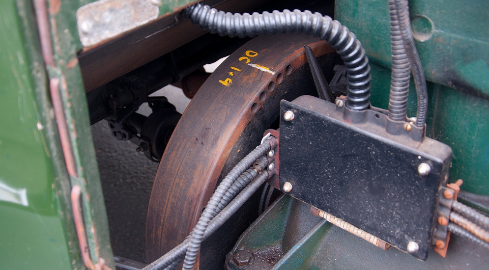 Подвеска Студебеккера, как я уже говорил, о существовании амортизаторов не знает. А вот рессоры здесь стоят не слабые, я бы сказал, даже чересчур. Под задней дверью виден небольшой лючок: если его отодвинуть в сторону, то появляется доступ к месту смазки задней рессоры. Маслёнки есть и на шкворнях передней подвески, и на наконечниках рулевых тяг. Зато впереди нет тормозных механизмов. Сзади они, конечно, есть, при этом самые суровые из всех возможных: ленточные. Их эффективность стремится к нулю, но, как помните, не так уж они тут и нужны, ими пользуешься, скорее, только при окончательной остановке.
