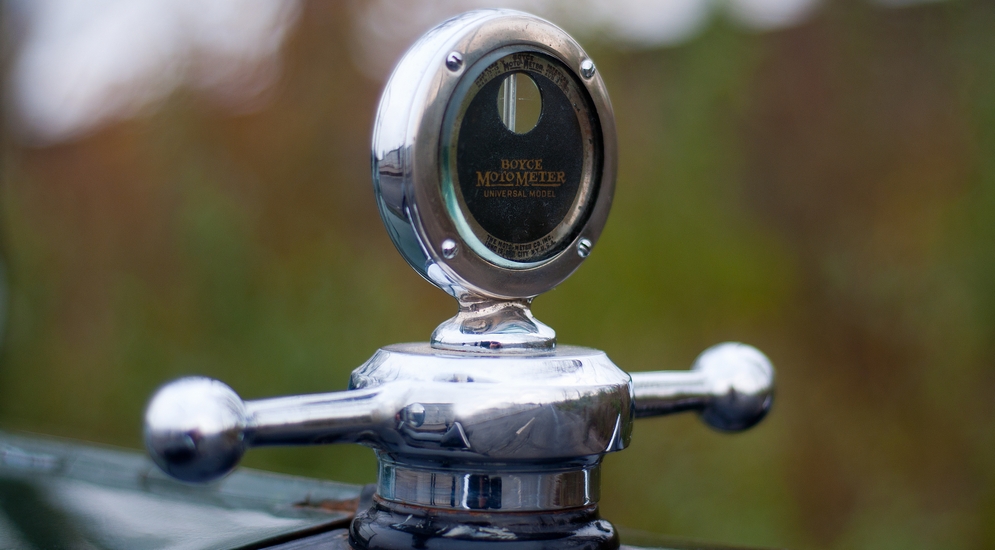 Допустим, нам удалось залить воду в радиатор. Положим даже, что смогли залить керосин. Теперь заливаем его через краники декомпрессора в каждый «горшок». Возникает следующая проблема: с абы как выставленным углом опережения зажигания машина не заведётся, это знает любой ребёнок старше двадцати пяти лет. Ясное дело, никакого автомата опережения тут нет, не было и быть не могло. Рычажок его регулировки находится на руле, поэтому придётся кого-то посадить за руль, а кого-то заставить крутить заводную рукоятку. Зато температуру залитой воды лучше смотреть как раз таки не залезая на водительское место: этот указатель и есть та красивая штука на капоте. Забегая вперёд скажу, что из-за руля её видно плохо, поэтому визуальное наблюдение за температурой воды по большому счёту возможно только на уровне «кипит – не кипит».