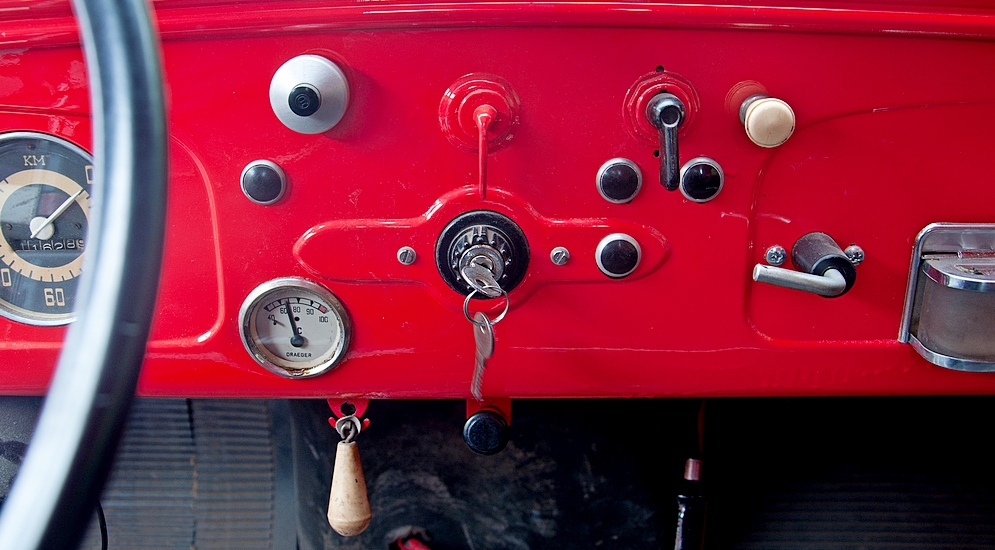 Есть в этой машине некоторые детали, установка которых на военный грузовик кажется некоторой роскошью. Например, заглушка отверстия для заводной ручки в решётке. Тем более нелогичными кажутся такие решения если учесть, что каркас кабины деревянный и далеко не самый крепкий. Он «дышит», поэтому, например, точно отрегулировать замки дверей практически невозможно. Внутри кабины установлена симпатичная пепельница (правда, она была далеко не всегда и не везде), а вот гораздо более нужный электростартер был не во всех грузовиках. У нас он есть, но всё же позволим себе вспомнить одну связанную со стартером байку.