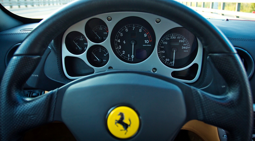 В Ferrari 360 Modena установлен 40-клапанный двигатель Tipo F131 V8 объемом в 3,6 литра и мощностью в 400 лошадиных сил, а все эти силы принимает на себя роботизированная коробка передач и разгоняет 1290 килограммов автомобиля до 100 км/ч за 4,5 секунды. Такой разгон даже в наше время считается весьма нехилым. Мотор в средней части автомобиля, и он, как произведение инженерного искусства, вызывающе смотрит на тебя из-под стекла «капота»: красные корпуса впускных коллекторов с надписью Ferrari и большая банка выхлопной системы поблескивает под стеклом...