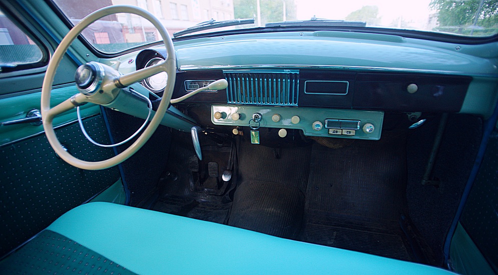 Через день мы уже стоим в гараже. Осматриваем экспонат из прошлого – почти целый "Москвичонок" 1961 года выпуска. Спустя почти полвека внутри чувствуется запах старого автомобиля – не зловонный дух гнилой ткани, а приятный такой запах старины... Полностью целый бирюзово-изумрудный салон передает ту красоту и гармонию цветов и материалов, с которыми специалисты передового автозавода МЗМА проектировали этот Автомобиль с большой буквы. Для нас сейчас смешно даже слышать, что в машине есть только радиоприемник и дворники. Однако это не помешало автомобилю в 1958 году в Брюсселе занять первое место на международной выставке. Ни минуты не задумываясь, мы купили его за скромную сумму в 10 тысяч рублей.