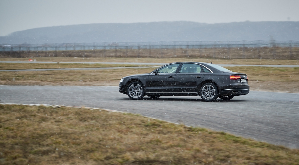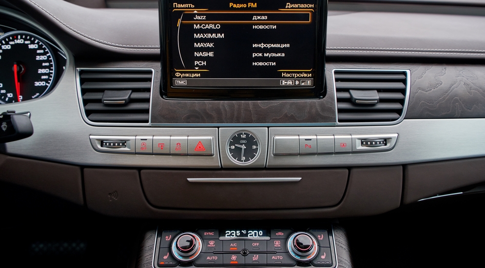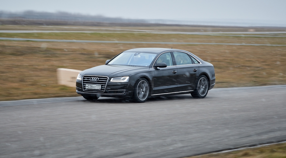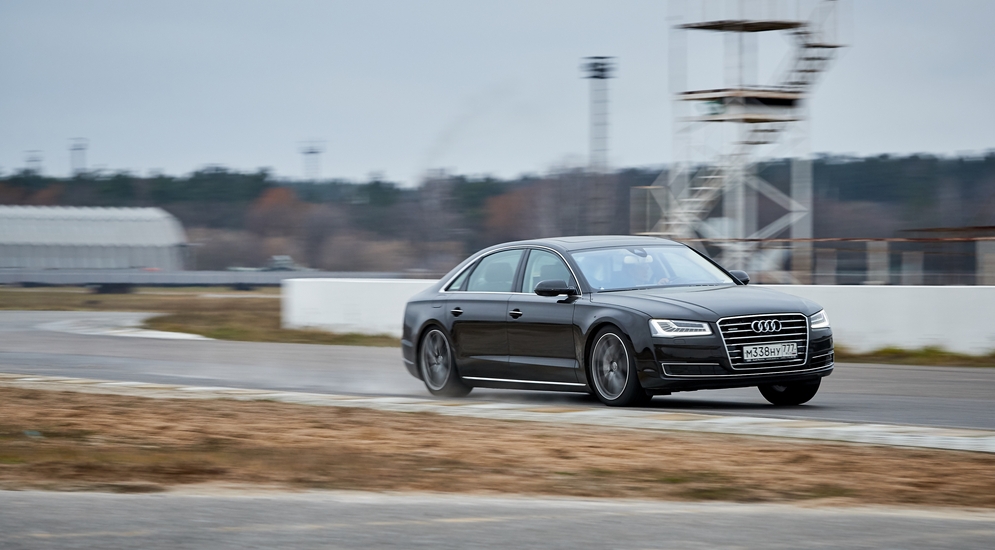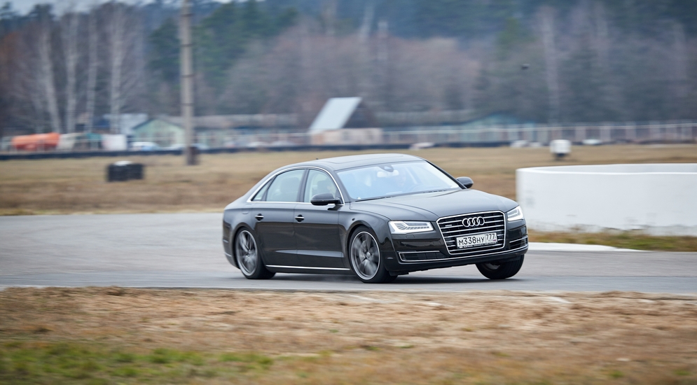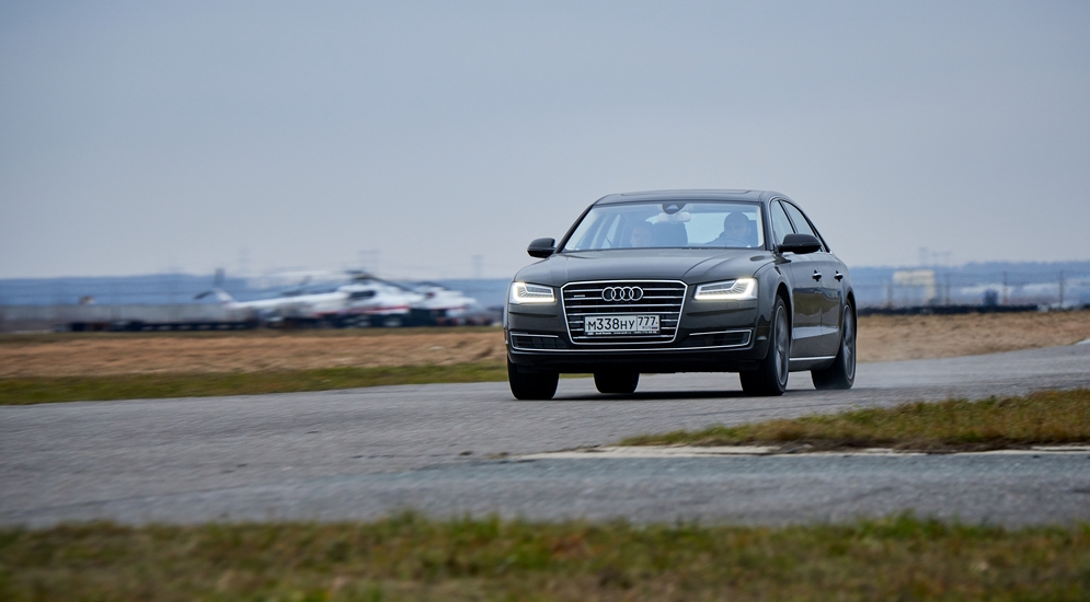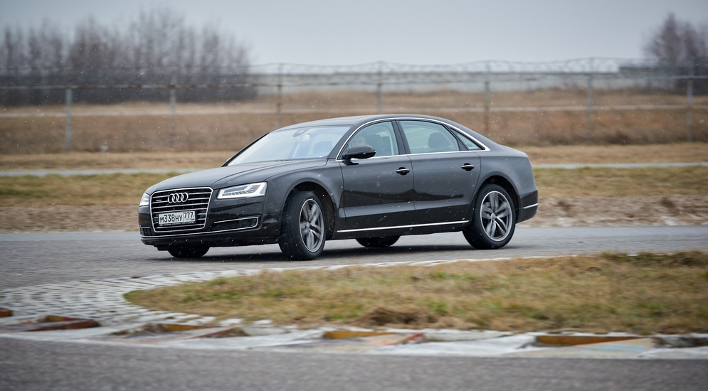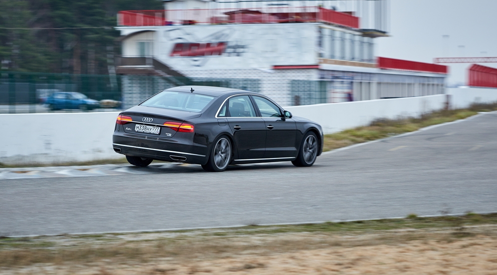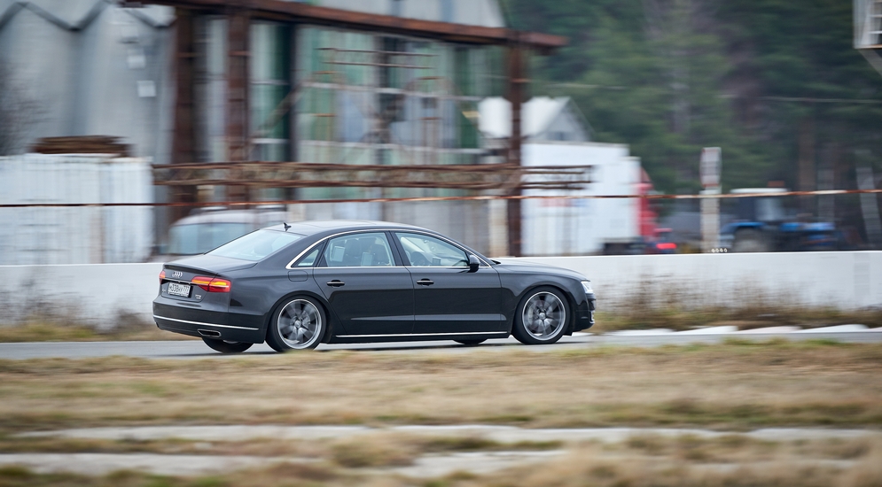 Audi оказывается гораздо более приземленной. Никаких чудес: даже в наглухо закупоренной машине (нет, со звукоизоляцией здесь полный порядок) ты чувствуешь себя участником событий и жителем этого бренного мира. A8, даже в длиннобазном варианте – это всего лишь большая легковушка. Большая, шикарная, мощная легковушка, но на четырех колесах, а не на воздушной подушке.