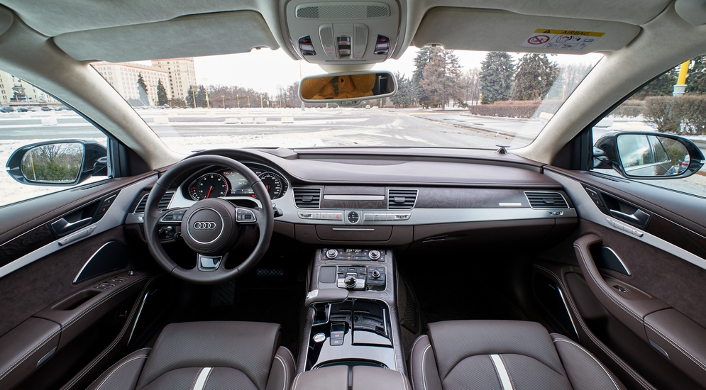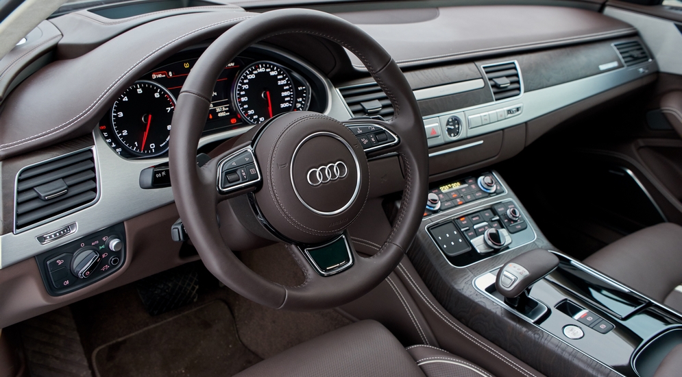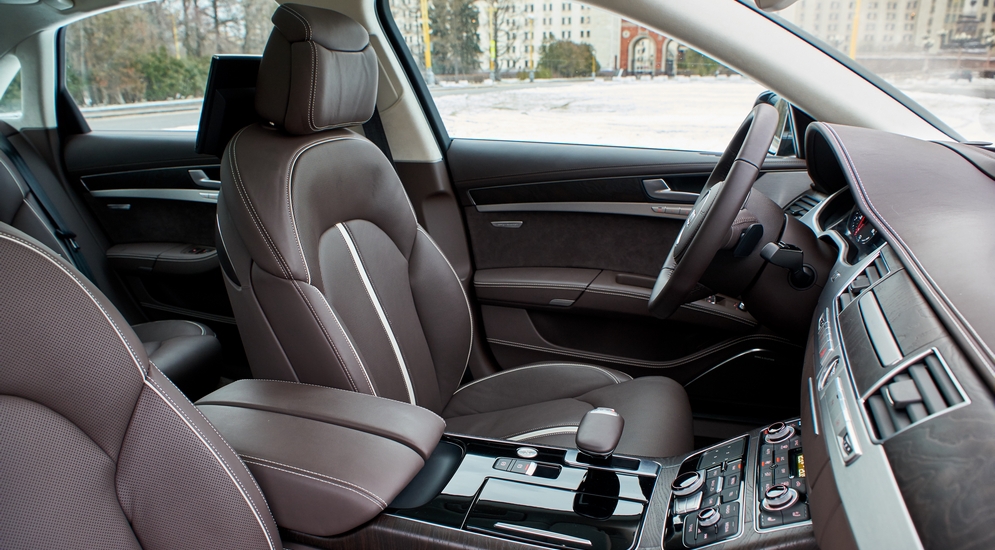 К Audi A8 у меня смешанные чувства: внутри она выглядит красиво, материалы качественные. Про управляемость: в медленных поворотах приходится перехватывать руль – неудобно. Динамика – как у “семерки”, но педаль тормоза "ходит" меньше.