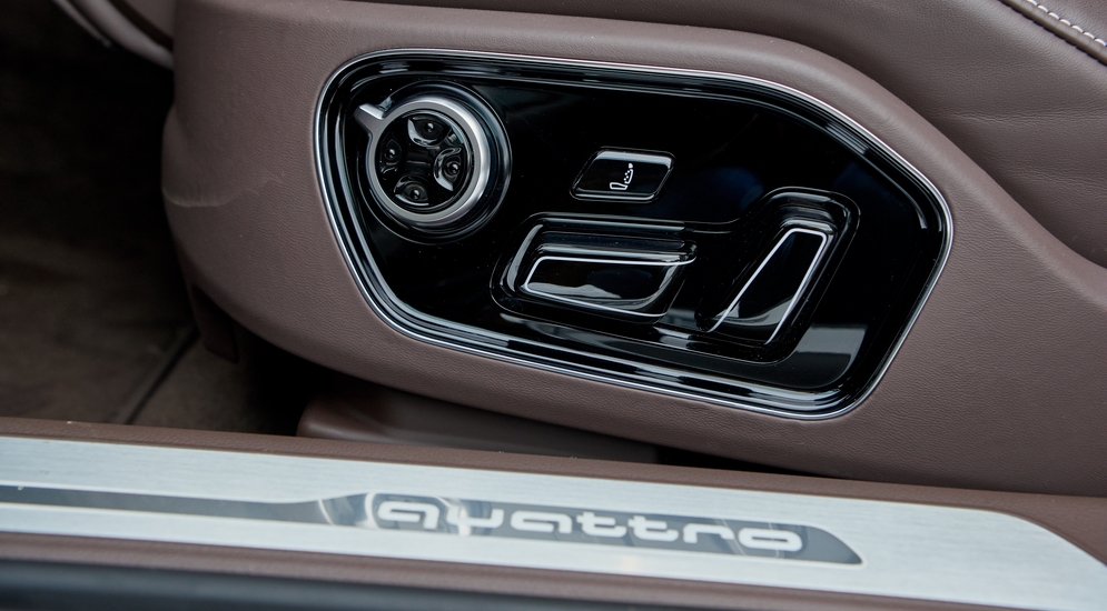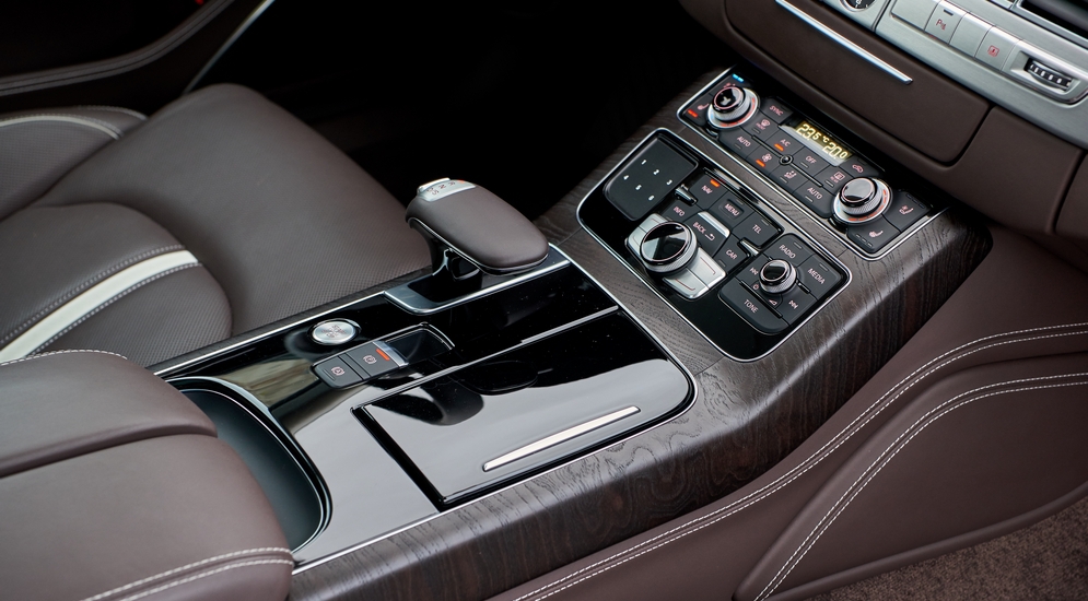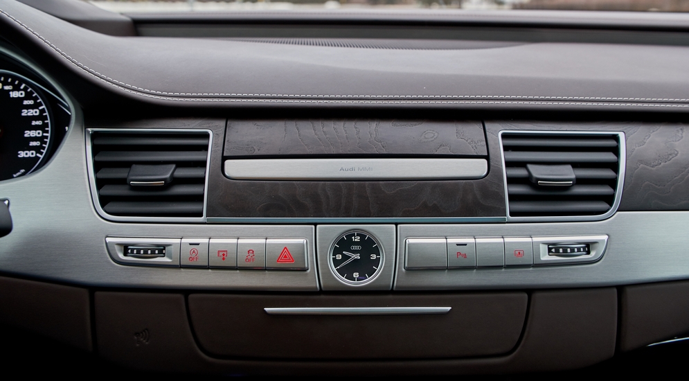 Да, «торпеда» тут отделана коричневым ясенем и кожей, из нее величаво выползают «пищалки» аудиосистемы Bang & Olufsen, олицетворяя изысканность и чистоту звучания, но простите… Руль, приборы, блок управления на центральной консоли, абсолютно все кнопки и рычажки, за исключением селектора АКПП, полностью повторяют салон А7 и А6. Унификация есть и у BMW, и у Mercedes-Benz, но у современных Audi она, по-моему, возведена в абсолют.