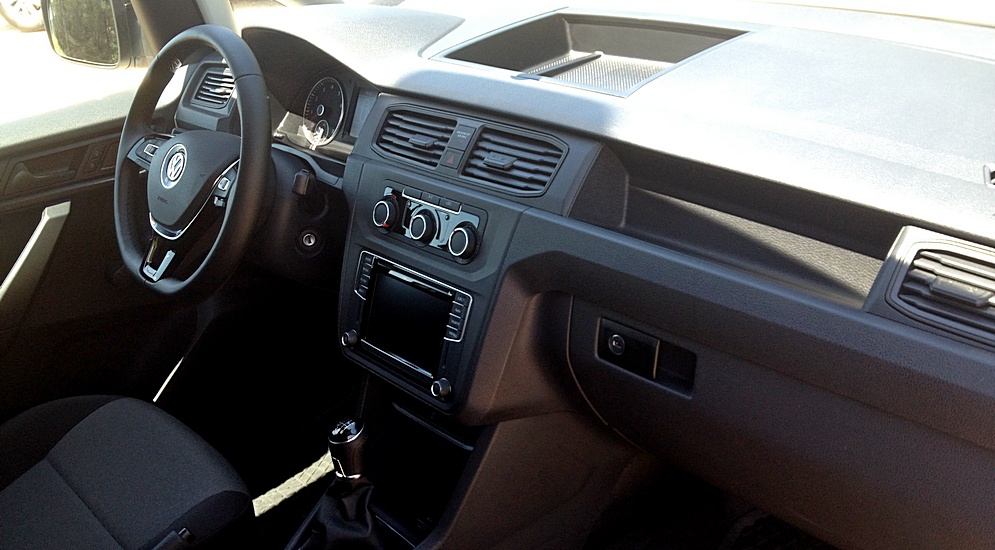 Понятно, что силовая структура кузова, общий силуэт и дверные проемы не менялись с 2003 года (именно тогда появился VW Caddy третьего поколения), и это позволяет говорить о том, что четвертое поколение – это не новая машина, как вещают нам маркетологи, а глубокий рестайлинг третьего. Но, справедливости ради, надо сказать, что рестайлинг получился куда глубже, чем ожидалось. Внешние различия с «третьим Caddy» минимальны: новые бамперы, светотехника, передние крылья и капот – все. Для пассажирских версий доступны еще и новые (довольно маленькие) зеркала: смотрятся стильно, но сильно искажают картинку, да и старые лопухи можно при желании поставить на машину в любой комплектации. Частично малый размер зеркал компенсируется появившейся в списке опций камерой заднего вида, но расположена она прямо над номером и ничем не прикрыта, так что стоит пойти дождю — и она моментально покроется слоем грязи. Сюрпризы от MQB Интерьер переработали полностью. И, как оказалось, в нем не без противоречивых решений. Руль от легковой линейки оптимален в сечении и обтянут приятной на ощупь кожей, однако он зачем-то срезан снизу… А в дорогих версиях на нем поселяется аж 12 кнопок и два джойстика. На мой взгляд – перебор, но молодежной аудитории нравится, тем более, что пользоваться ими большого труда не составляет. Левая часть руля полностью отвечает за управление адаптивным круиз-контролем (АСС), который сам разгоняется, тормозит и сохраняет дистанцию, аккуратно повторяя маневры впередиидущего автомобиля, вплоть до полной остановки на машинах с DSG и до 30 км/ч на машинах с механическими коробками, только время от времени просит, чтобы водитель переключил передачу.В большинстве случаев АСС работает корректно, однако и у него бывают нелогичности в поведении: когда мы ехали в абсолютно штатном режиме на 45 км/ч по пустой улице в крохотном городке, АСС вдруг ни с того ни с сего оттормозился до полной остановки и отключился, печально пискнув, дескать: ты за рулем – ты и тормози. Хотя в России вряд ли можно будет попробовать АСС. Подобные опции не пользуются особым спросом, наши перевозчики норовят купить машины в комплектациях победнее. Но и здесь не все коту масленица. Европейцы уже могут заказать новый Caddy «на веслах» (с механическими стеклоподъемниками), а вот нашим перевозчикам такие изыски недоступны, в российском представительстве Volkswagen NFZ, решили, что у всех наших машин электростеклоподъемники входят в базовую комплектацию (как-никак, 2015 год на дворе). А вот расположение кнопок стеклоподъемников – это досадный прокол со стороны фольксвагеновских эргономистов: в угоду вместительности дверных карманов ручки и подлокотники укоротили, из-за чего кнопки стеклоподъемников оказались в неоптимальной зоне, и для того, чтобы ими воспользоваться, приходится очень сильно изгибать кисть. Приборная панель осталась практически такой же, а вот всефольксвгеновский блок мультимедиа поменяли, хотя с функционалом все осталось не так уж однозначно. Хорошая графика, чувствительный тачскрин и возможность подключения смартфона по «синему зубу»… Кстати, мультимедийный комплекс открывает любые приложения вашего смартфона, включая фильмы и игры. Ради эксперимента мы вывели на экран «Злобных птиц» (игру Angry Birds, — прим. ред.) — и это несмотря на то, что разработчики электроники утвер
