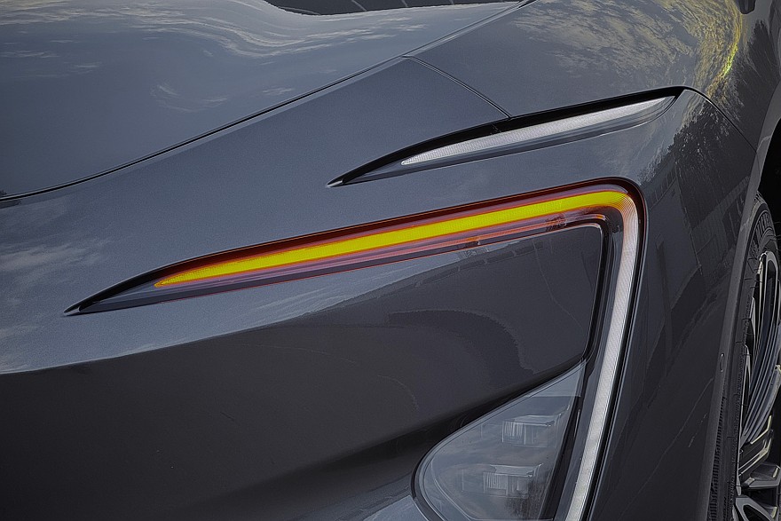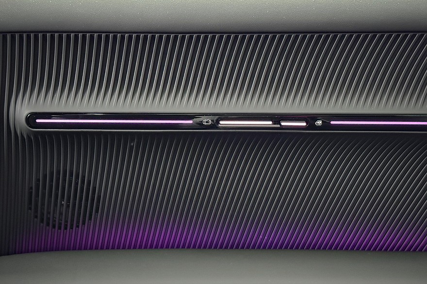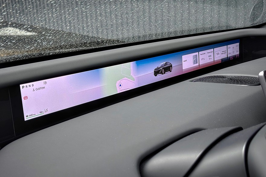 Интерьер седана не менее футуристичен, но на первый взгляд неоднозначен. Самый необычный элемент здесь – узкий, но длинный 35,4-дюймовый экран, который вытянулся под ветровым стеклом вдоль передней панели. Должен сказать, что я был настроен к нему крайне скептически, но внезапно оказалось, что это очень даже удобная штука. По сути, он заменяет проекционный дисплей, которого в 12 не бывает. В общем, эта штука напомнила длинную барную стойку, за которой неожиданно удобно работать, а не только выпивать.