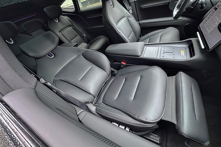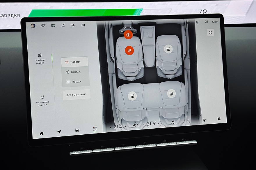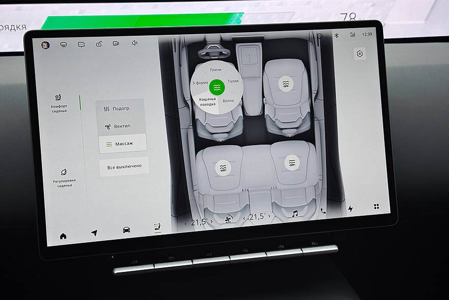 Необычного вида кресла на практике очень удобны: покритиковать их можно разве что за недостаточную поддержку спины в районе лопаток, но в остальном – класс. Мягкость наполнителя оптимальная, подушка длинная, оттоманка есть даже у водителя, оригинальные подголовники ничуть не мешают. Регулировок – уйма, включая угол наклона как подушки, так и всего кресла в целом. И массаж, к слову, работает изумительно.