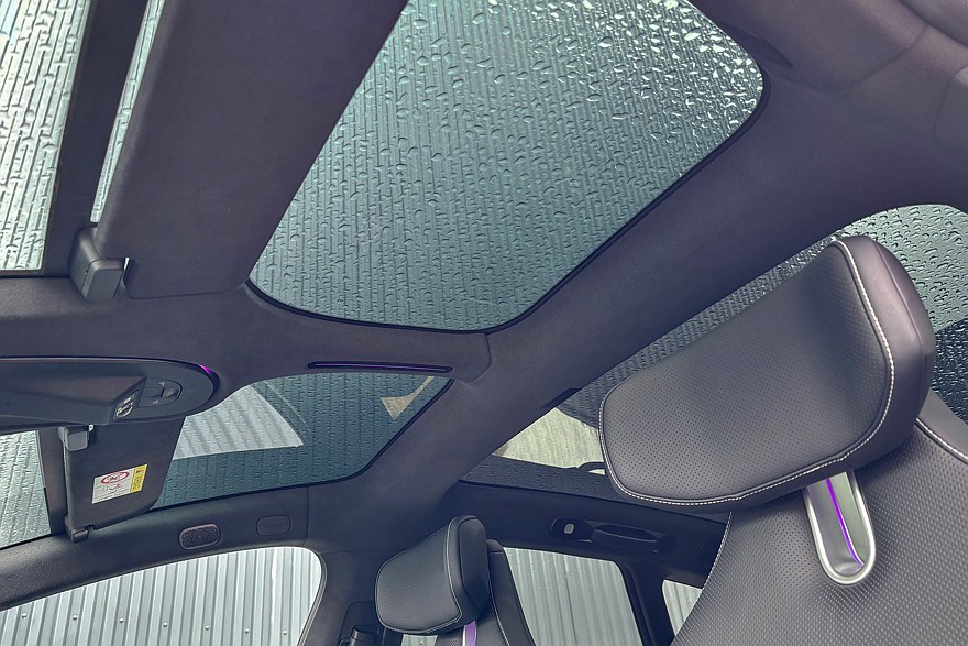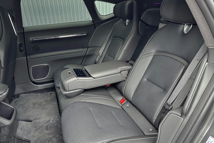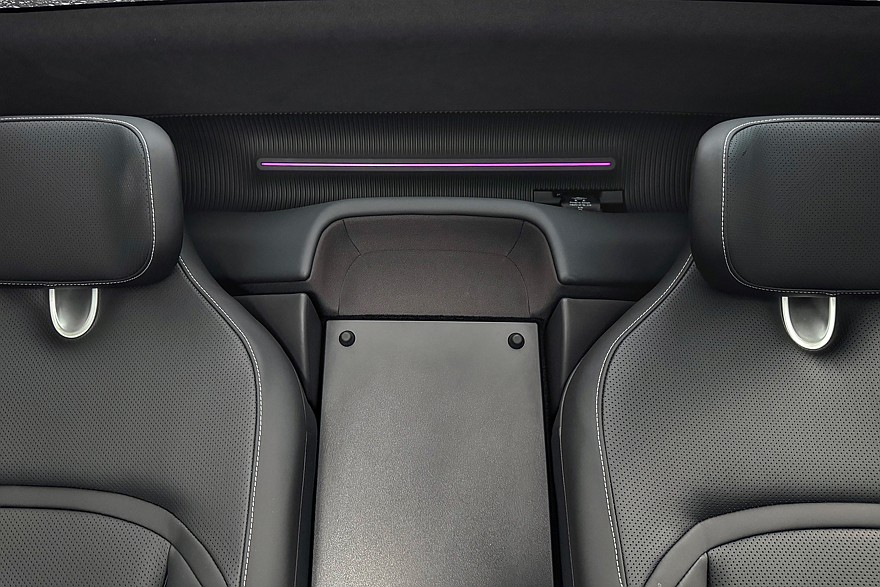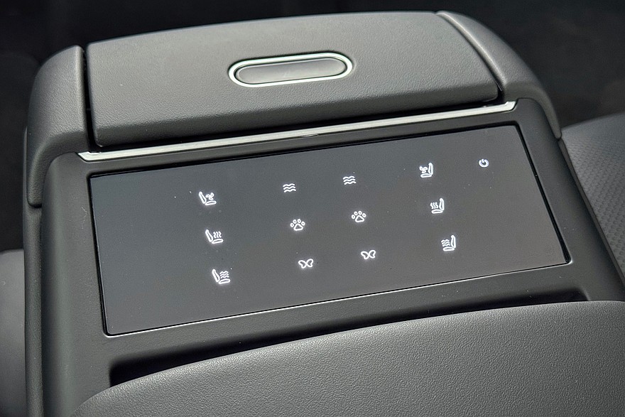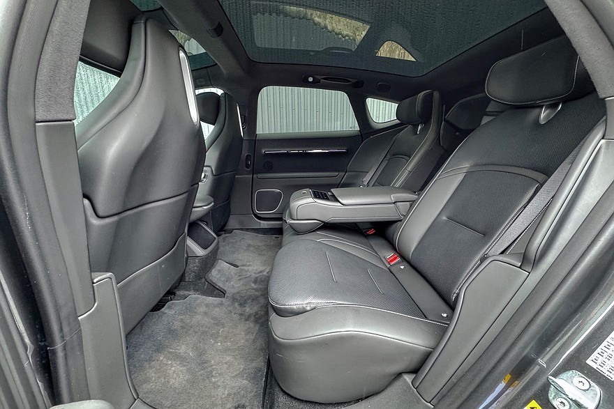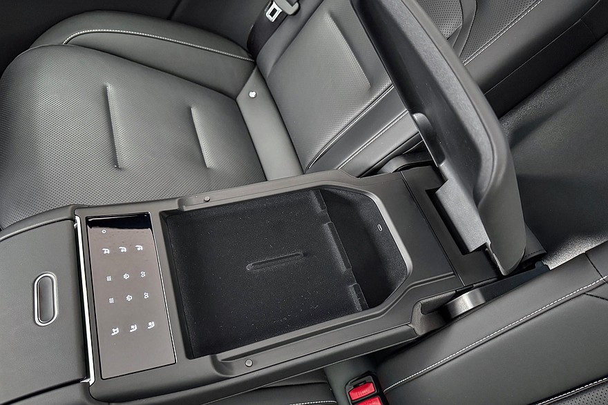 На втором ряду – прямо-таки лимузинный простор. По крайней мере – в ногах и плечах, а вот высоту серьёзно ограничивает стремительный профиль крыши. В откидном центральном подлокотнике есть пульт управления массажем, подогревом и вентиляцией дивана, а также пара подстаканников. Диван лишён регулировок, но посадка здесь вполне удобная – глубокая и расслабленная. Собственной зоны климата сзади, увы, нет. Как бизнес-класс без индивидуального меню – в целом всё хорошо, но по мелочам чуть не дотянули.