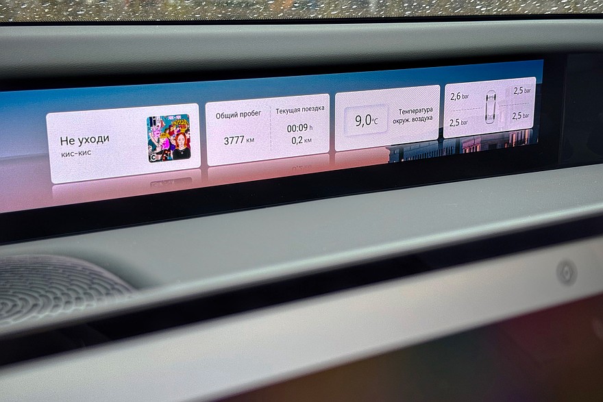 В отличие от модели 11, заднего стекла тут нет вовсе. Смотреть назад предлагается через камеру в крышке багажника – кстати, с омывателем, который появился в ходе российской адаптации вместе с подогревом ветрового стекла. Взамен автомобиль лишился трёх лидаров и жидкокристаллической панели над крышкой капота, на которую в китайской версии можно выводить всякие надписи. Чувствуешь себя так, будто у тебя отключили пару функций умного дома, но оставили голосового помощника, которому больше нечем управлять.