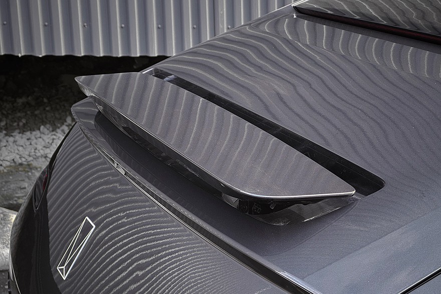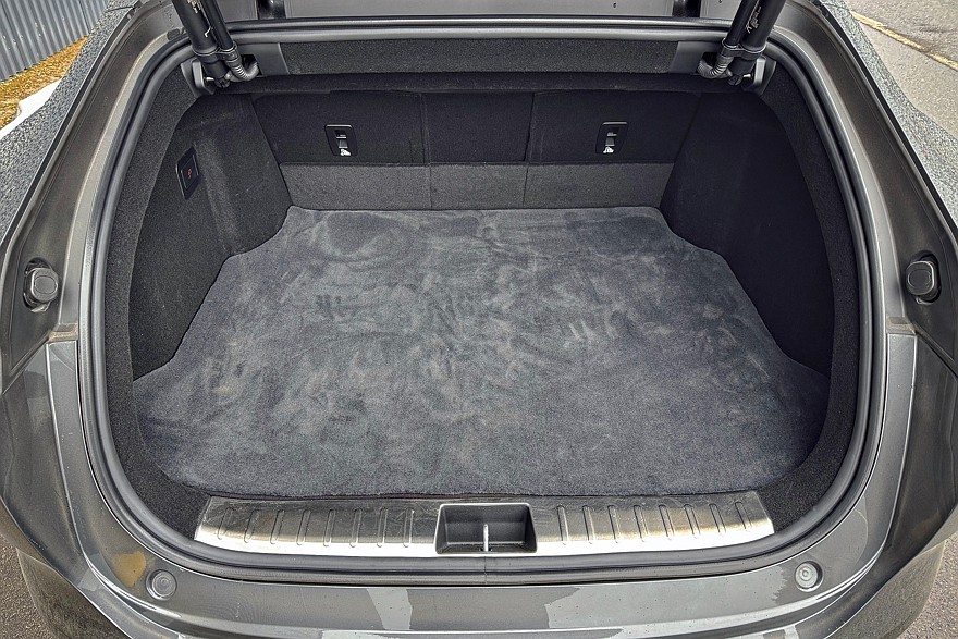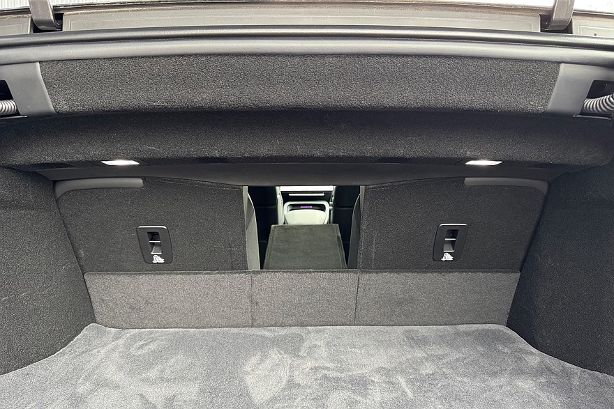 Спереди тоже есть небольшой отсек – на 65 литров. В отличие от заднего багажника, крышка переднего лишена электропривода, поэтому закрывать его нужно вручную – неизбежно пачкая руки. А ещё на задней крышке есть выдвижное антикрыло, которое поднимается на скорости выше 90 км/ч и убирается обратно на 60 км/ч. А можно и вовсе поднять его принудительно – как любят водители Porsche Panamera. Наверное, так они чувствуют себя на гоночном треке, даже если поехали за хлебом.