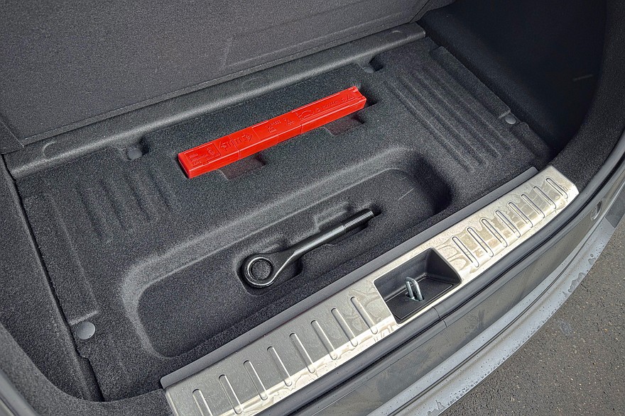 Кстати, климат-контроль отлично справляется со своими обязанностями – стёкла в дождь не потеют, температура стабильна. Спинка дивана складывается в пропорции 40:20:40, задний багажник весьма приличный – 425 литров, а благодаря оригинальной форме кузова у него ещё и довольно большой проём. Запасного колеса или докатки, разумеется, нет – здесь их попросту некуда пристроить.