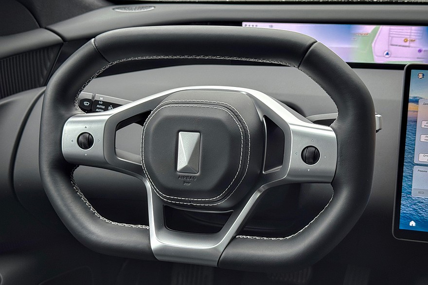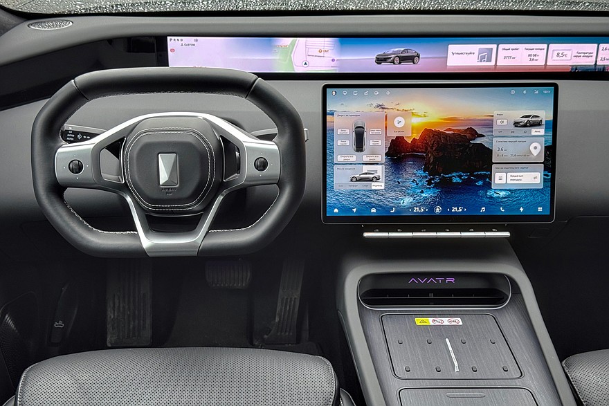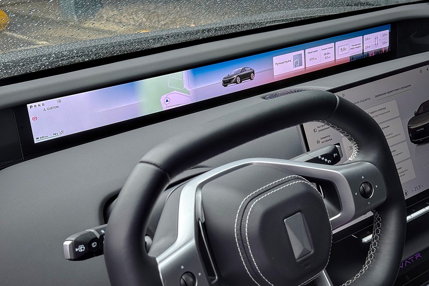 Потому что максимальная комплектация может похвастать камерами вместо наружных зеркал – и тогда приборный дисплей становится по-настоящему панорамным, от стойки до стойки. Но, как обычно, за всё нужно платить, а в случае с Аватром за столь оригинальное компоновочное решение пришлось принести в жертву нормальный руль. Вместо него здесь угловатый штурвал, вращать который, честно говоря, неудобно. Это как дизайнерский стул: эпатажно, модно, но спина быстро напомнит, что ты всё-таки не экспонат.