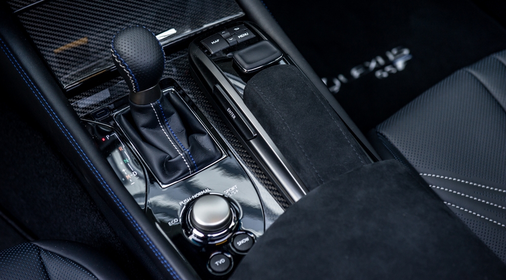 От «гражданского» GS горячая версия, означенная такой скромной и «неспортивной» литерой F, отличается очень сильно. Естественно, внешний стайлинг не оставляет никакого сомнения, что перед вами не обычная машина. Низкопрофильная резина, массивные тормозные суппорты, «светящиеся» сквозь ажурные колесные диски золотистым покрытием, четыре патрубка выхлопной системы и, конечно же, невероятная решетка радиатора, «стекающая» с капота к самой земле единым потоком.Разумеется, главное внутреннее отличие – это двигатель, о котором мы уже поговорили – «теплый ламповый» V8 с индексом 2UR-GSE, не обремененный турбо- или каким-либо другим наддувом. Разумеется, он оснащен правильной «акустикой» – выхлопная система позволяет восьмерке звучать очень сочно и мощно!Мотор сагрегатирован с восьмиступенчатым «автоматом». Причем, как и в случае с мотором, японцы не пошли на поводу у модных веяний, а сохранили классическую конструкцию. Коробка – гидротрансформаторная, никаких новомодных роботов с двумя сцеплениями. Силовой агрегат имеет несколько режимов работы – «Эко», «Нормал», «Спорт» и «Спорт плюс». В очередной раз не могу не съехидничать: купив тачку мощностью под пять сотен сил, вы будете ездить в режиме «Эко»? Думаю, вряд ли. Но перед злыми экологами нужно сделать реверанс.