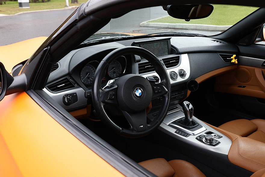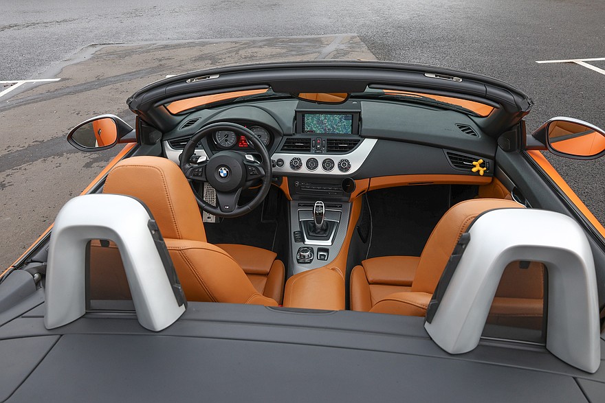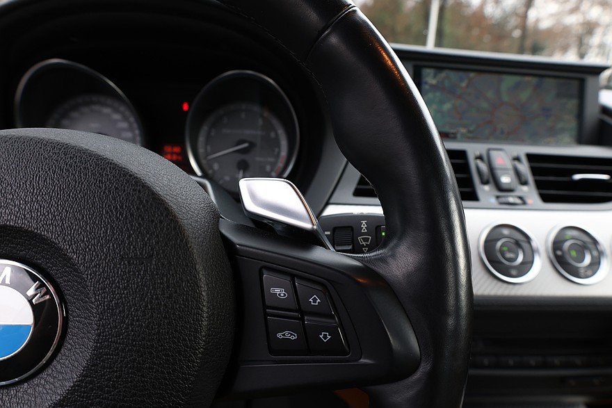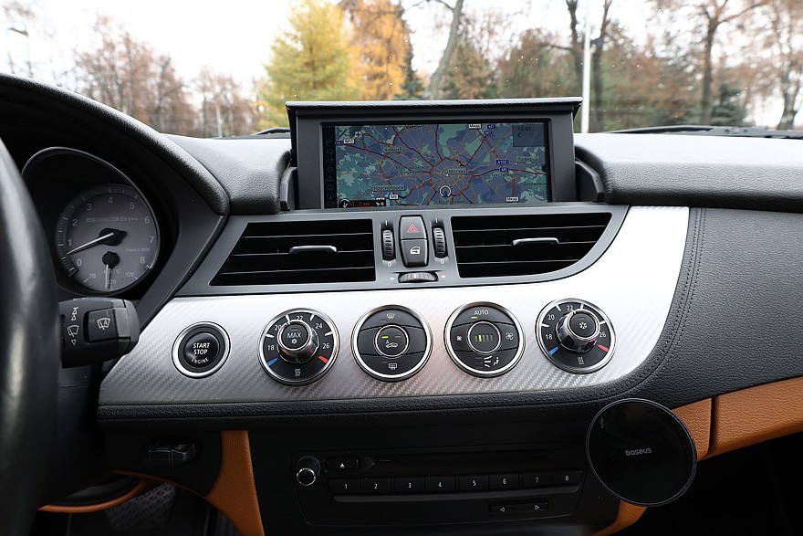 Версии Z4 с младшими моторами не имели мультимедийных экранов вовсе, но тут он весьма крупный для своих лет, причем еще и моторизованный – складывающийся. Эдакий характерный образчик исчезающих технологий. Звучание аудиосистемы и по сей день роскошное: настройки АЧХ, задержек и прочих нюансов акустики делались непосредственно под салон этого родстера, что, впрочем, не редкость для премиальных моделей.