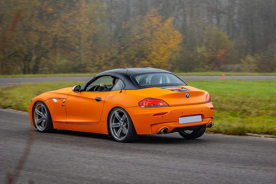 В поворотах невозможно не заметить странный характер машины, который оказывается склонным, скорее, к недостаточной поворачиваемости. При увеличении скорости в повороте «зетка» стремится к сносу передней оси. Машина не провоцирует к постоянной езде боком, как многим покажется при взгляде со стороны. Z4 сопротивляется и держится изо всех сил: раньше становится страшно, чем происходит срыв задней оси. Сорвать в занос можно, мощности хватает. Но поддерживать занос машина не хочет и водителю в этом не помогает. Причем все сказанное касается езды с отключенной системой стабилизации.