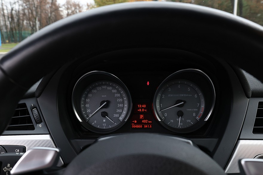 Несмотря на возраст, двигатель N54 весьма интересный и технически продвинутый. Это высокооборотистая (с красной зоной на 7 тысячах) рядная 3-литровая «шестерка» мощностью 340 сил (существовали версии N54 с отдачей от 306 до 340 л.с.). В двигателе применена система питания с прямым впрыском, фазорегулирование на впуске и выпуске, охлаждение с помощью электрической помпы. Но наиболее интересное решение – две турбины, работающие каждая от выхлопа своей группы из трех цилиндров и нагнетающие воздух в общий впуск. Турбины маленькие, компактные, выдающие по половине бара и интегрированные непосредственно в раздельные выпускные коллекторы. Такое размещение вкупе с крыльчатками небольшого диаметра подарило мотору очень быстрый отклик на газ с минимальным турболагом.