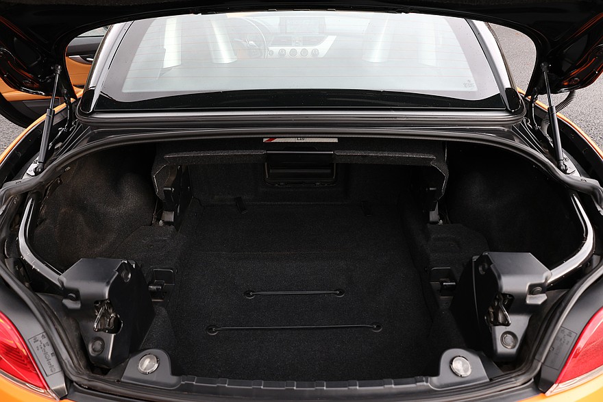 Объем у него довольно скромный – 310 литров, но и это – только при поднятой крыше. В режиме кабриолета «трюм» уменьшается до совсем смешных 180 литров. В следующем поколении Z4 G29 этот нюанс устранили, сделав объем в 270 литров вне зависимости от положения крыши, но лишь за счет перехода от алюминиевого потолка к тканевому тенту.