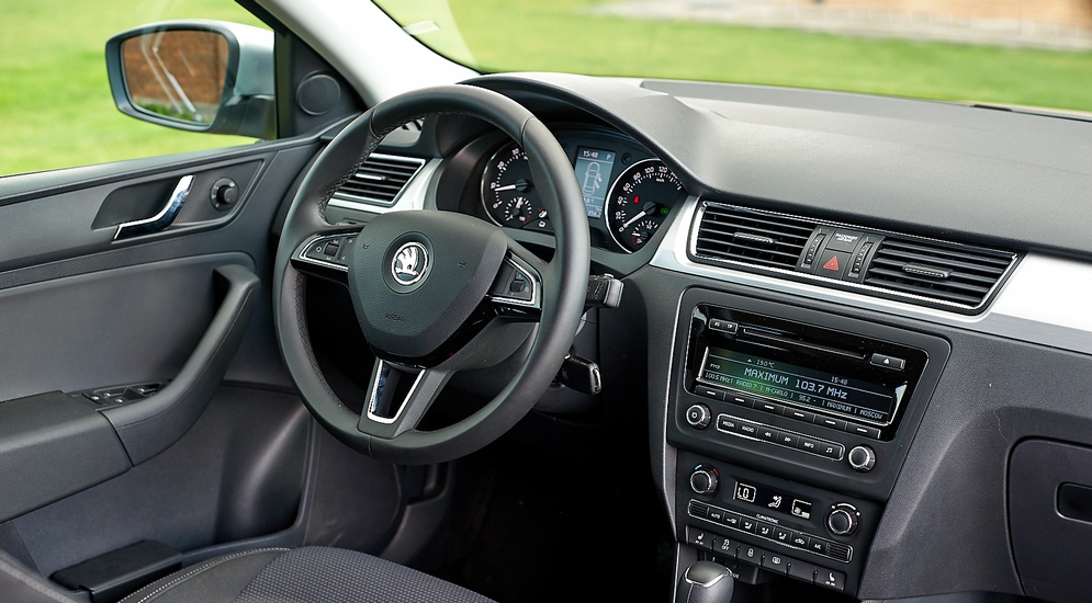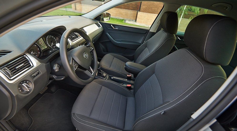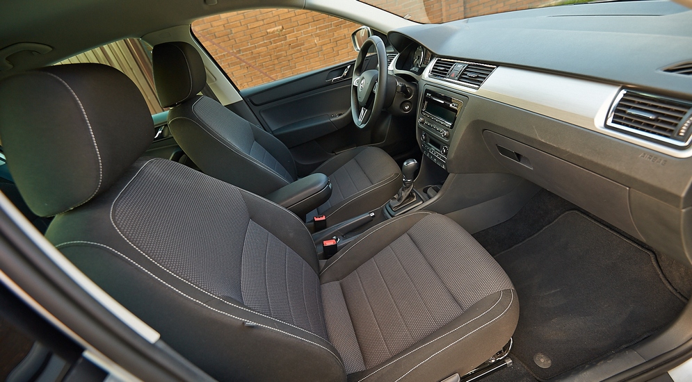 Салон не менее строг, чем внешность. Стилистика очень сдержанная, но это тоже можно засчитать в плюсы: такой дизайн не устареет и через десять лет. Пластик жесткий, но аккуратный, собрано все ровно. Порадовала типичная для Skoda отделка некоторых элементов "под алюминий". Ну и эргономика — идеальная. Жесткое, но удобное кресло регулируется во всех направлениях в огромных диапазонах, рука сама собой ложится на подлокотник, руль обит хорошей, гладкой кожей. Выглядит это все совсем не бюджетно. Напротив, даже после VW Polo Sedan возникает ощущение, что сел в довольно дорогой автомобиль. Все логично: ради того, чтобы понравиться придирчивым европейцам, экономию на материалах надо скрыть так, чтоб никто не догадался.