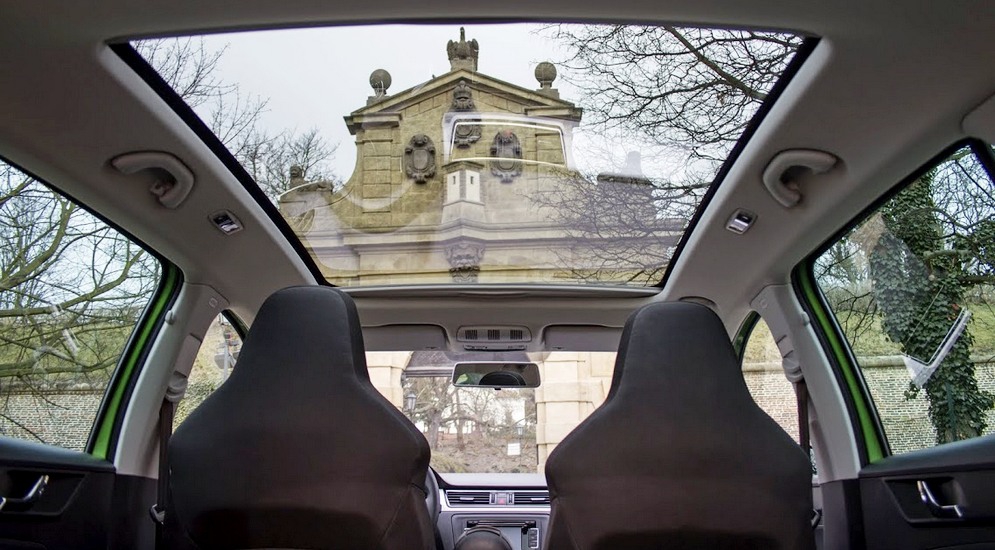 Чего хочется? 6-ступенчатая "механика" явно не помешала бы, так как "пятиступки" Рапиду с "атмосферником" 1.6 откровенно не хватает – знаю по опыту эксплуатации. Ярко-зеленый цвет кузова тоже добавляем в вишлист, вместе со светлым салоном (на тесте была машина с темным, но в продаже в Европе светлые салоны есть, в отличие от России). Еще давайте панорамную крышу, тем более что стоит она невеликие 640 евро.