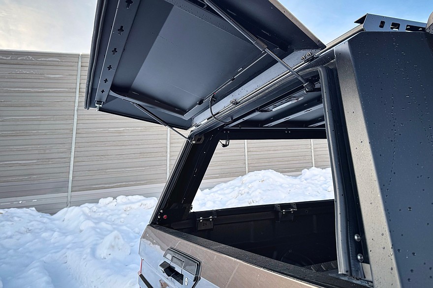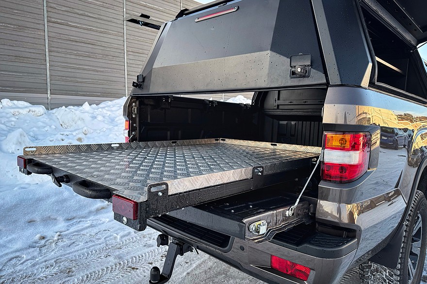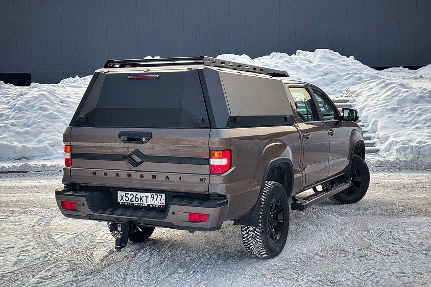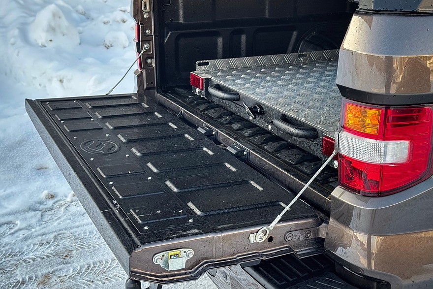 Huanghai чуть меньше американского исходника, но всё равно сегодня это самый длинный пикап на российском рынке – без малого 5,7 метра! Грузовой отсек тоже будь здоров – 1715 мм в длину и 1620 мм в ширину. А чтобы загружать его было удобнее, в кузове есть опциональный выдвижной поддон – удобнейшая штука, управляться с которой можно одной рукой. Мечта человека, который никогда не расстаётся со стаканом кофе. Среди прочих аксессуаров – алюминиевый кунг с тремя створками.