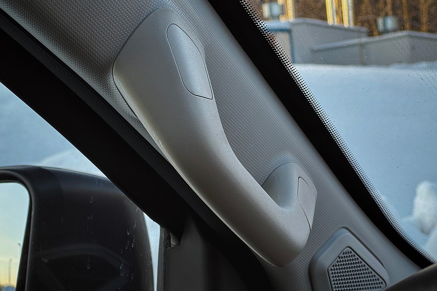 А если на улице влажно или идёт снег, без обдува стёкол не обойтись, поскольку они быстро запотевают. Надо сказать, что кабина довольно быстро прогревается, но на втором ряду нет ни подогревов, ни хотя бы дефлекторов вентиляции, поэтому там и холодно, и ничего не видно в запотевшие стёкла. И жёстко – диван второго ряда похож, скорее, на обтянутую кожзамом скамейку. Как в государственной поликлинике у кабинета стоматолога. Есть центральный подлокотник с парой подстаканников и даже розетка на 220 вольт.
