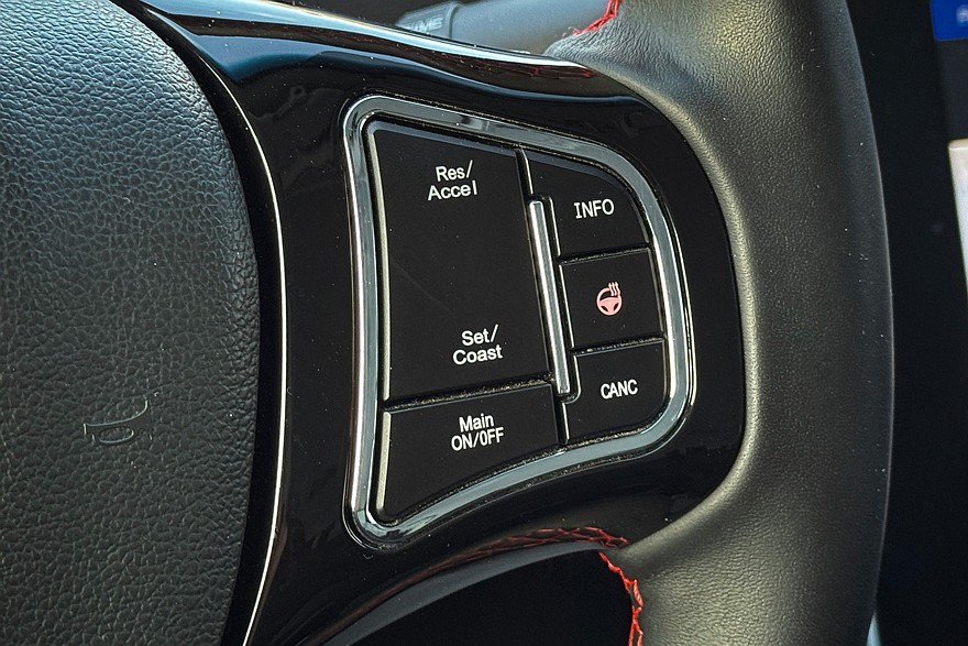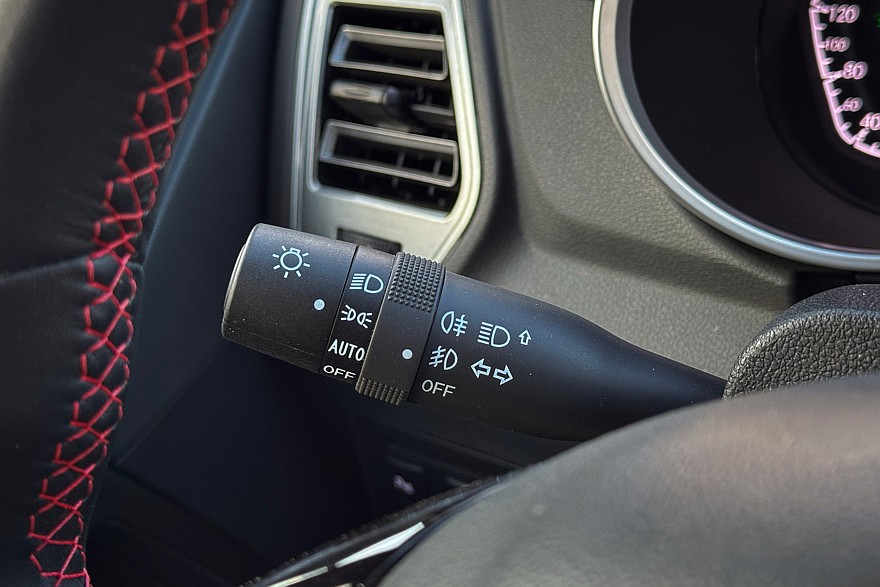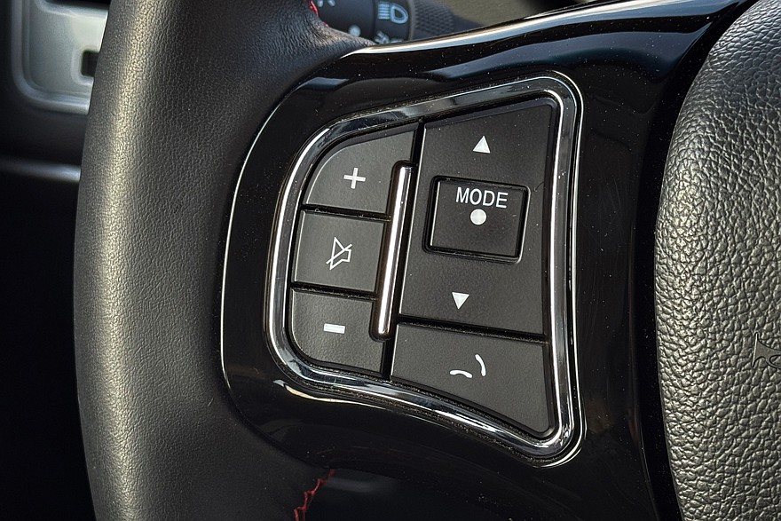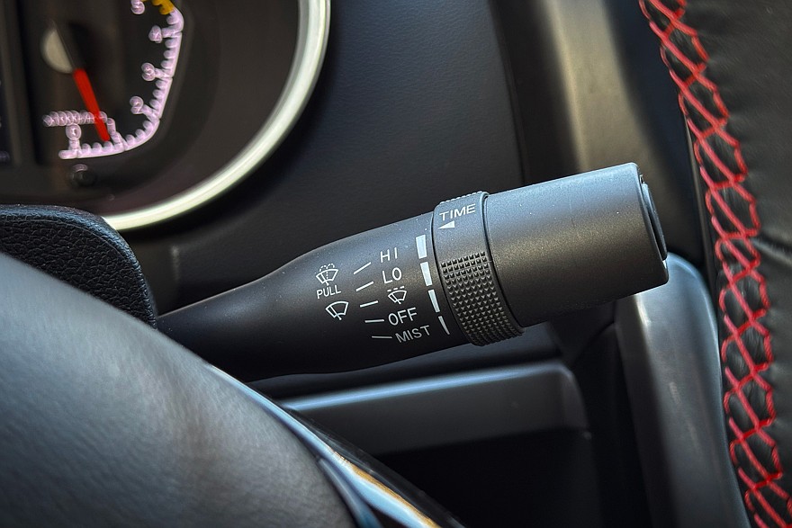 Зато – никаких сенсорных кнопок и игривая красная прострочка. Настоящая, а не фейк. Автоматический режим есть только у водительского стеклоподъёмника и работает он лишь на опускание, поэтому, чтобы поднять стекло, кнопку нужно удерживать. Панель приборов – простой 5,6-дюймовый цветной экран плюс аналоговые спидометр и тахометр по бокам. Функционал дисплея невелик и, по большому счёту, позволяет только полистать меню.