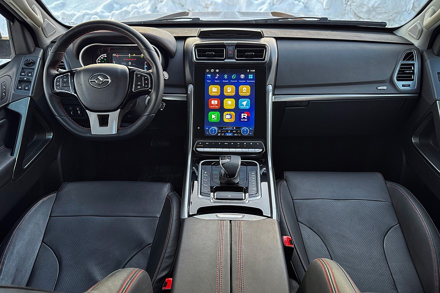 Интерьер пикапа незатейлив, но, с другой стороны, никаких премиальных амбиций у Huanghai, к счастью, нет, что по нынешним временам редкость. В эпоху, когда любой пылесос пытается выглядеть как люксовый гаджет, это почти подвиг. Грубоватым кожзамом здесь обшит только козырёк приборной панели и все подлокотники, включая двухстворчатый центральный, кнопку открывания которого то и дело случайно нажимаешь правым локтем. Всё остальное – практичный, но жёсткий пластик. Если кому-то это вдруг важно, на центральном тоннеле нет подстаканников, которые в американских пикапах есть.