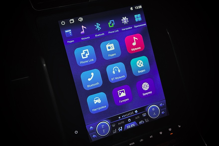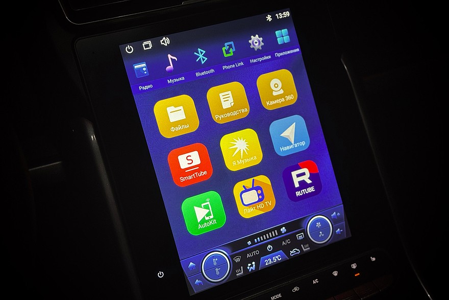 Дисплей по нынешним временам откровенно слабоват разрешением и качеством картинки, но функционал – моё почтение! Apple CarPlay нет, но в систему на базе Android зашиты навигатор и музыка от Яндекса, есть Rutube и даже телевидение с несколькими сотнями каналов, включая региональные – на любой вкус. В общем, можно ехать в тайгу и одновременно смотреть новости из родного города. И на парковке всегда есть чем заняться. Интернет приложениям раздаёт модем, который есть в списке аксессуаров.