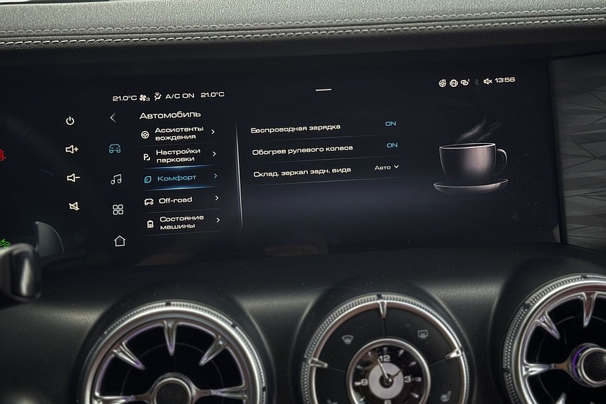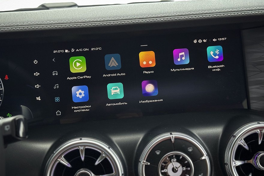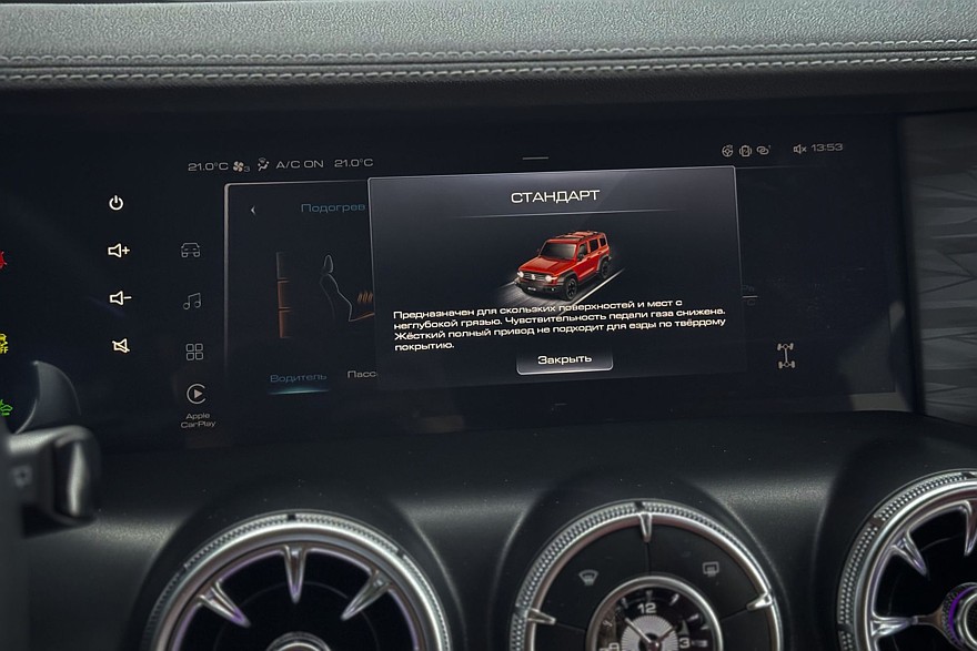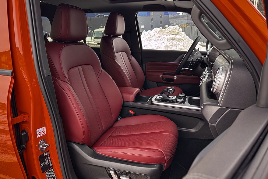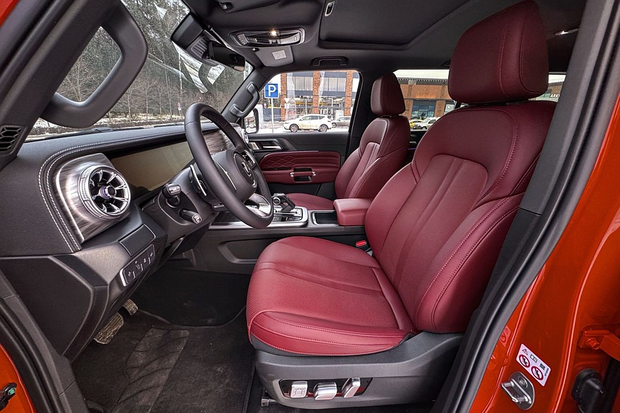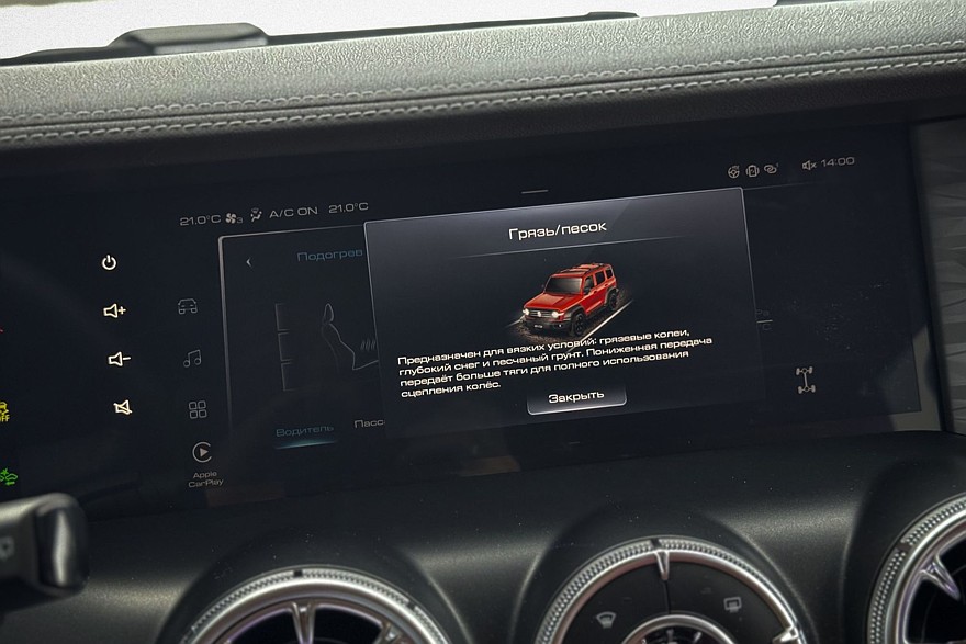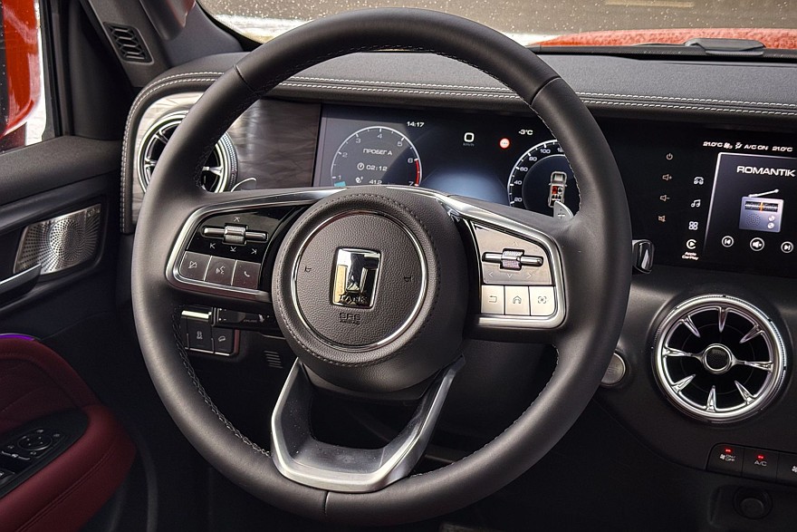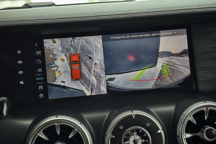 Зато как хороши две увесистые шайбы по бокам от селектора коробки передач! Такие хочется покрутить даже без повода. Левая отвечает за переключение режимов движения, правая – за настройки трансмиссии. Рядом – массивные, хоть в рукавицах нажимай, кнопки управления блокировками межколёсных дифференциалов, внедорожным круиз-контролем и «танковым разворотом». Климат управляется аналоговыми кнопками, подогревы кресел – тоже. Дефлекторы в виде турбин а-ля Мерседес красивы и удобны, и только царапающийся серебристый пластик на тоннеле портит впечатление. С другой стороны, спасибо, что без «рояльного лака».
