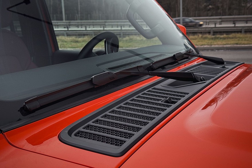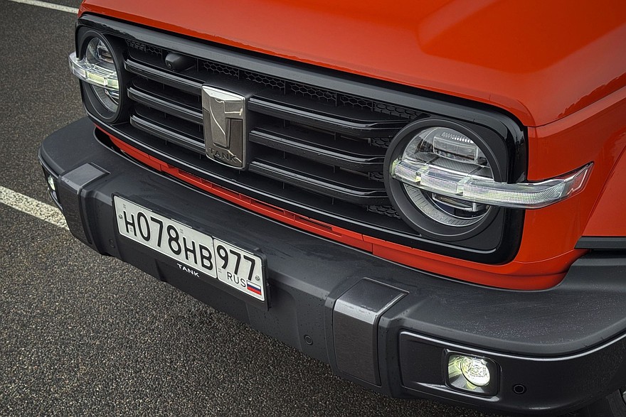 И это все обновки, если говорить об экстерьере. Всё остальное осталось прежним: круглые фары, перечёркнутые ходовыми огнями а-ля Ford Bronco, развитые колёсные арки, всё тот же угловатый силуэт, гармоничные пропорции. Кстати, во время теста я встретил на дороге 300-й с тюнинговой решёткой радиатора в виде гигантских букв TANK – как раз в стиле Форда. Смотрится это примерно так же, как прийти на праздник в футболке с собственным именем. Есть в палитре Танка и довольно-таки весёлые цвета кузова, например, «Чарский оранжевый» и «Красный эльтон», не считая «Белого ольхона», «Серого шантара» и «Чёрного богдо».