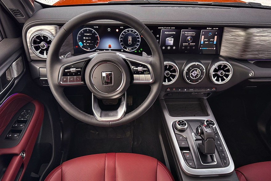 А вот внутри изменений гораздо больше. Например, 300-й получил новый цвет отделки интерьера – вишнёвый. Стойки крыши и потолок у комплектаций Premium и City Premium при этом будут антрацитового цвета. Но ещё больше радует глаз новый дизайн приборной панели с классическими круглыми шкалами и стрелками вместо цифровой мешанины. Ну красота же! Как хронограф среди фитнес-браслетов. Причём на домашнем рынке такой вариант был изначально. Но хорошо, что для России осталась нынешняя архитектура салона – в Китае модель получила большой тачскрин вместо кнопок, которых здесь ещё много.