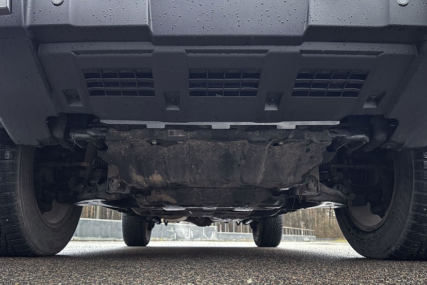 Tank 300 построен на стальной лестничной раме и для российского рынка оснащается лишь 2,0-литровым 220-сильным бензиновым турбомотором E20CB, который работает с гидромеханическим автоматом 8HP50 от ZF. А ведь на некоторых рынках «трёхсотый» доступен с дизелем в паре с 9-ступенчатой коробкой передач… Жаль, что эта конфигурация не для нас. Раздаточная коробка BorgWarner у версии с муфтой была доработана: раньше можно было выбрать либо автоматическое распределение тяги (AWD), либо понижающий ряд (4L). Теперь конфигураций стало вдвое больше – появился исключительно задний привод (2Н) и постоянный полный с замкнутой муфтой (4H), который работает на скорости до 80 км/ч. Вдобавок с 2,48 до 2,64 увеличено передаточное отношение демультипликатора и добавлен экспертный режим в настройках трансмиссии. Он предназначен тем, кто предпочитает не подсказки, а полный контроль. Спереди у 300-го – независимая подвеска на поперечных рычагах со стабилизатором, сзади – мост на продольных рычагах с тягой Панара и стабилизатором поперечной устойчивости.