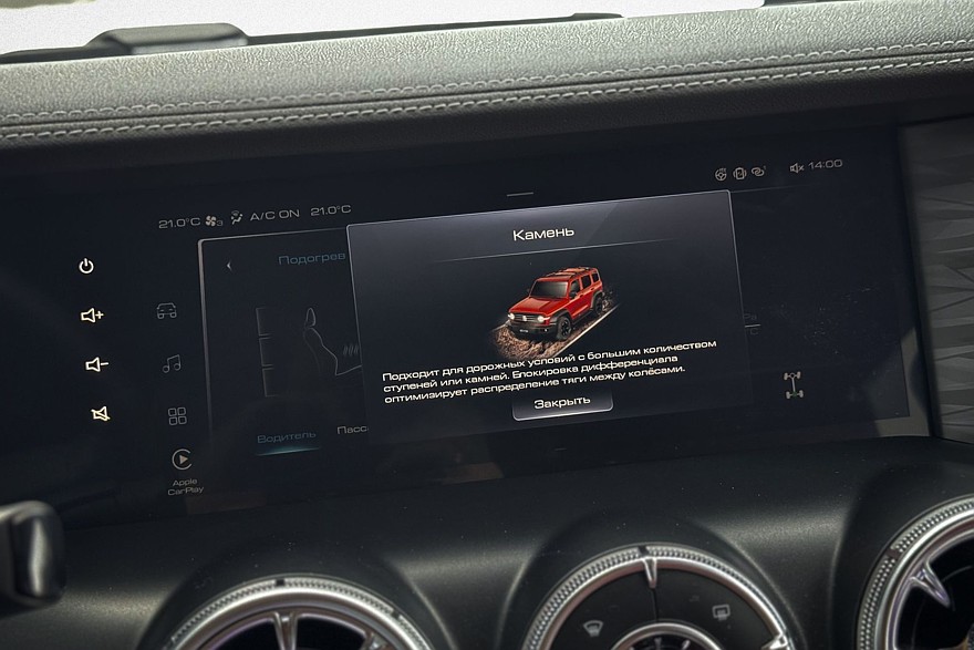 Режимы движения нам хорошо знакомы: «Стандарт», «Грязь/песок», «Камень», «Гора» и «Ухабы». Вкупе с понижающей передачей и обеими межколёсными блокировками потенциал получился выдающимся – здесь Танк оправдывает название бренда и охотно штурмует любые препятствия на пересечённой местности. Естественным ограничителем выступают шины, которые сдадутся намного раньше, чем машине перестанет хватать геометрии или тяги на бездорожье. А вот на твёрдом покрытии небольшая разница всё-таки есть.