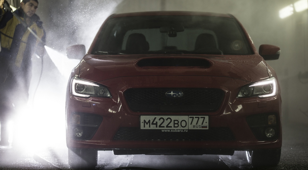 В-четвертых, выяснилось, что подрулевые лепестки переключения передач чуть отодвинули основные рычажки управления и сместили их ровно на столько миллиметров, чтобы водителю приходилось отрывать руку от руля для включения поворотника. Хотя, кто знает, может быть, считается, что руль должен быть сделан под какого-нибудь пианиста или Никколо Паганини.В отчаянии мы решили заехать на мойку. WRX, отданный мне в виде поросенка, уже больше напоминал танк после успешного броска через пустыню Гоби — грязные разводы и пылевые вихри вздымались вверх по кузову от колесных арок. Пока радостный мойщик соловьем заливался на тему, как он любит машины без брызговиков, мы решили поискать что-то хорошее.