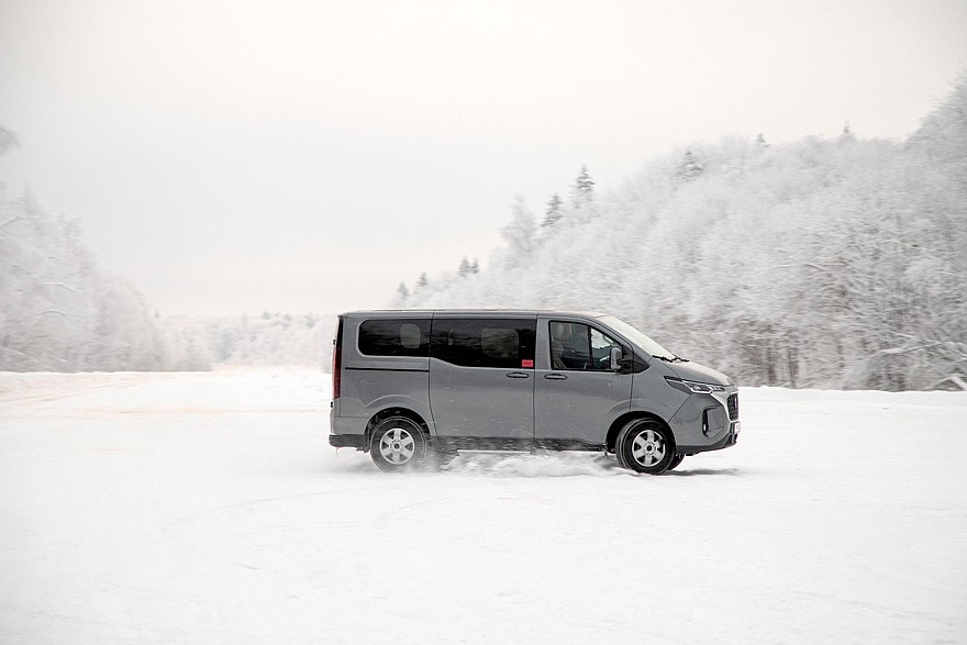 Времени на знакомство с автомобилем у нас было очень мало, да и условия тестового проезда получились весьма специфическими: после прошедших мощных снегопадов на дорогах остались ледяные бугры, прикрытые легким снежком. Вот по такому покрытию я и разгонял микроавтобусы до 80 км/час по спидометру. При этом короткобазную версию мне все же приходилось слегка подлавливать, а вот длиннобазная шла как по рельсам. Что откровенно понравилось – это согласованность работы дизеля с обоими вариантами коробок. Автомат работал четко и плавно, переключения совершенно не чувствовались. Я всегда считал, что сочетание приличного дизеля с гидромеханикой – это очень хорошо, правильно и комфортно, благо для ускорения коробке не обязательно нужно сбрасывать передачи вниз: тяги хватает для того, чтобы начать разгон на текущей передаче. Понравилась и шестиступенчатая механика: переключения четкие и вверх, и вниз, можно эффективно тормозить двигателем.