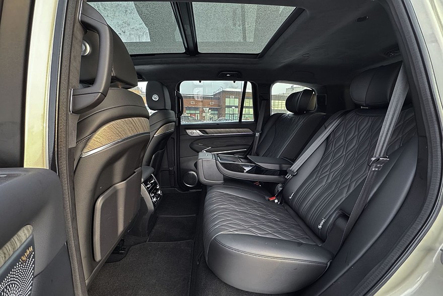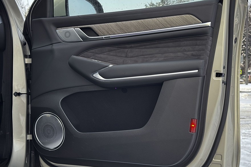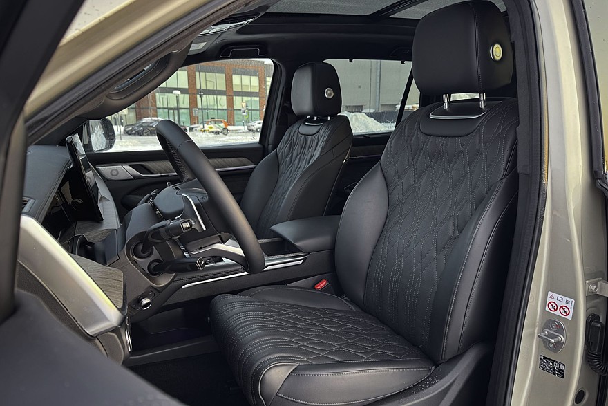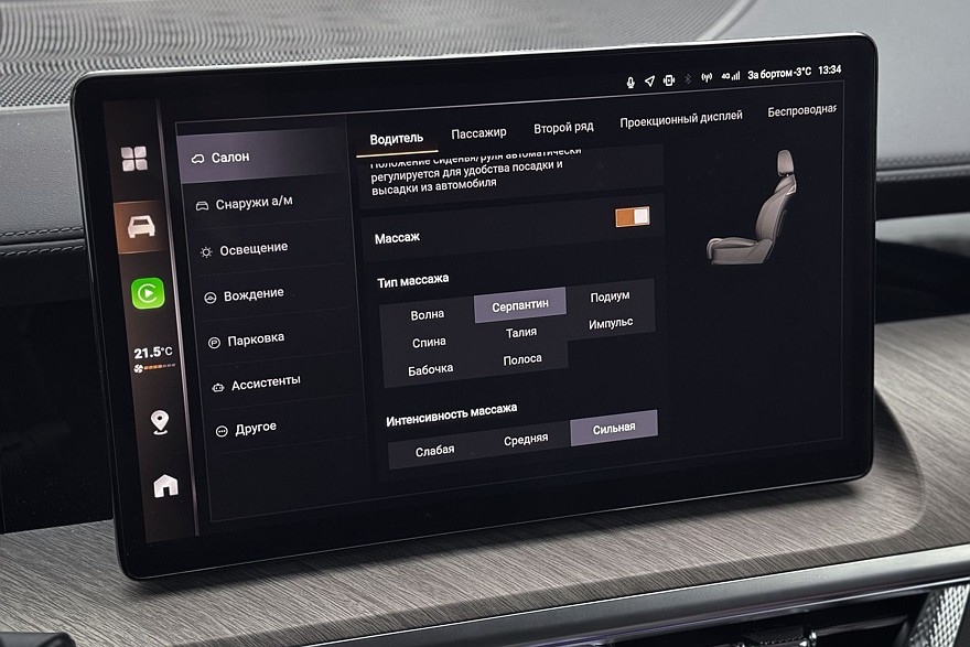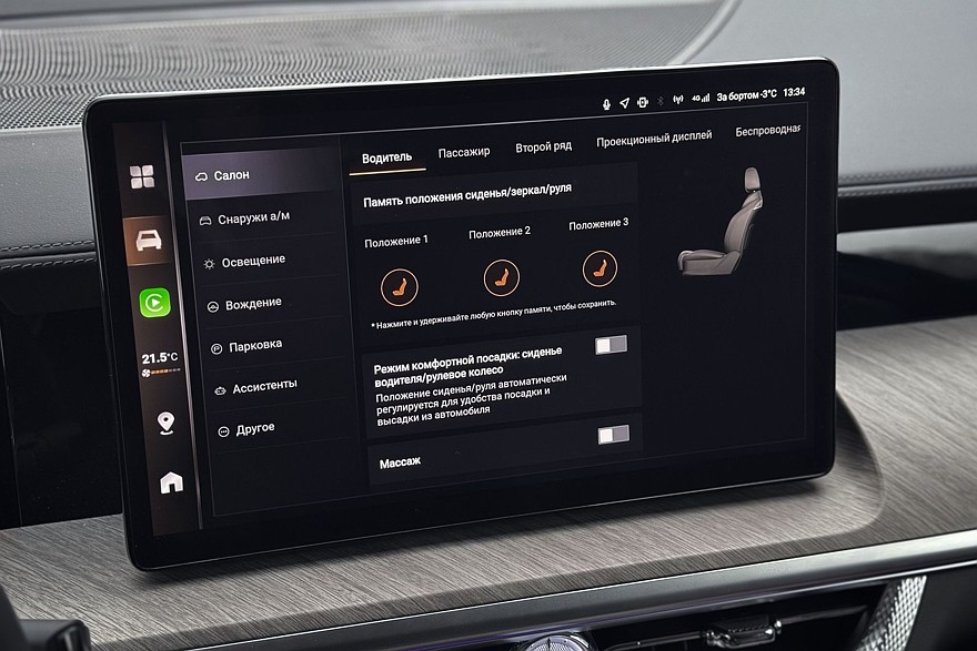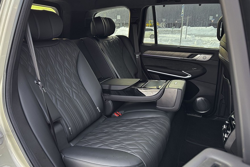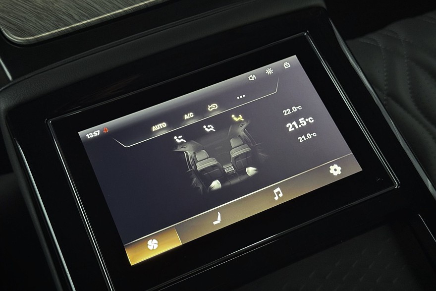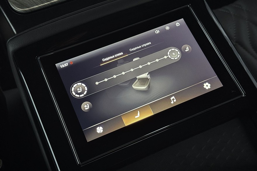 Массивные кресла безоговорочно удобны и предлагают по девять уровней подогрева и вентиляции – ну неужели кому-то действительно нужна настолько избыточная точность? Отказываюсь верить, что где-то есть человек, который греет поясницу строго на шестом уровне. Режимов массажа – восемь штук, с тремя уровнями интенсивности для каждого. Приятно, что весь этот набор предлагается как для передних, так и для задних пассажиров. Кроме среднего, который тут, скорее, для галочки, поскольку на этом месте всегда будет откинут подлокотник с удобным тачскрином.