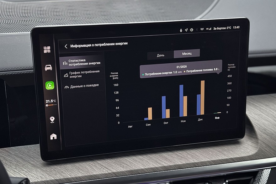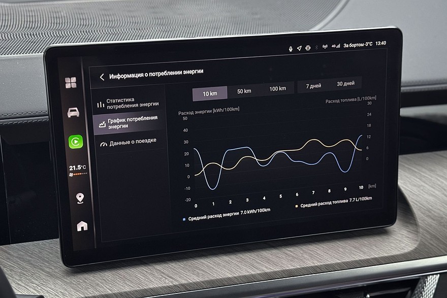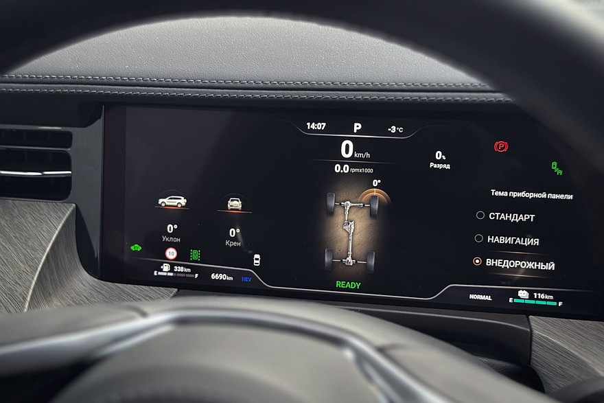 Причём на стоянке Tank не умеет пополнять заряд батареи от ДВС: ради эксперимента я попробовал включить режим «восполнения энергии при низком уровне заряда батареи», но за час он вырос всего на 2%! А вот на ходу – другое дело, но только в загородных поездках и на трассовых скоростях. И с очевидной расплатой повышенным расходом топлива: 16-17 литров на сотню. Разумеется, и запас хода падает примерно до 400 километров. Режим HEV представляется всё-таки наиболее оптимальным.