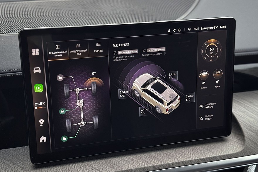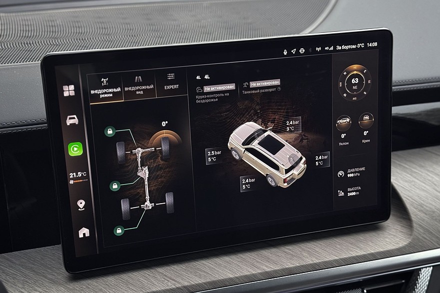 Блокировок у 500 полный набор – все три штуки. Принудительно блокируется и межосевой дифференциал, и оба межколёсных. Завидный потенциал, в былые времена доступный только хардкорным внедорожникам типа Gelandewagen. Но Гелик не был гибридом, а Tank умеет жонглировать мощностью бензинового двигателя и электромотора. Ну и подобный запас хода Гелендвагену тоже не снился: в официальных характеристиках Tank его не сообщает, что странно, но с полностью заправленным баком и заряженной батареей бортовой компьютер обещает порядка 800 километров пробега.
