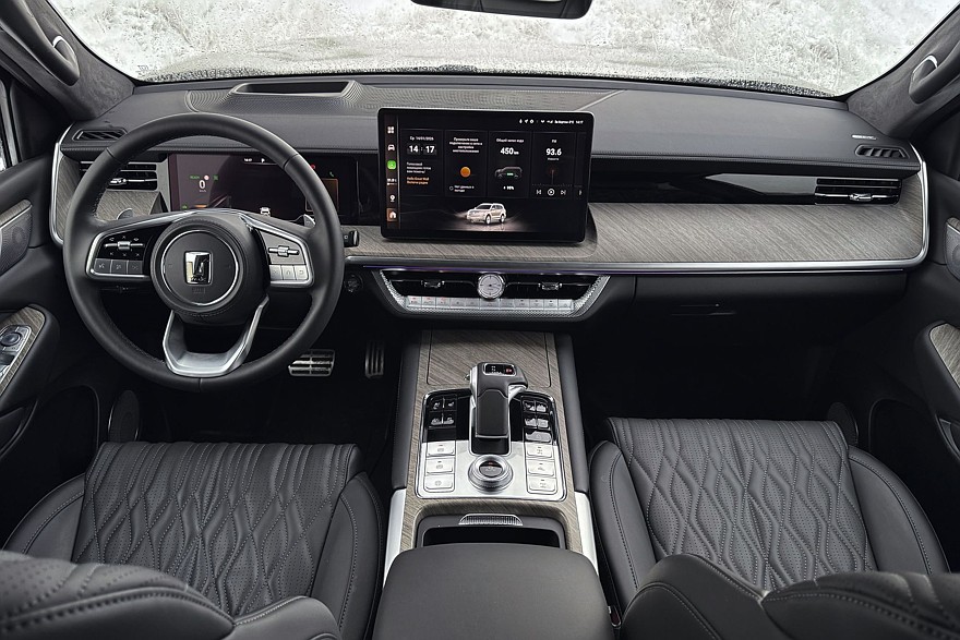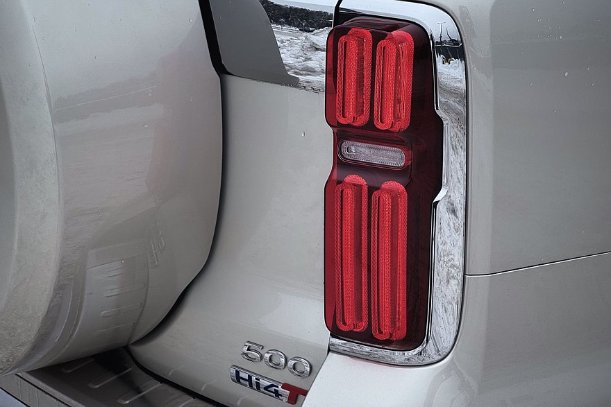 В городском режиме эксплуатации средний расход топлива составил 14,4 литра на 100 км, электричества – 7,8 кВт·ч. Неплохо для трёхтонного рамного автомобиля и уж точно ощутимо меньше, чем у внедорожника с мотором V6. Тот легко выпивает и 20 литров бензина. Но… стоит ли игра свеч и так ли важна разница в расходе для реальных покупателей Tank 500? Из плюсов версии Hi-Charge – более скромный аппетит и лучшая динамика, из минусов – выросшая на 360 кг по сравнению с базовой версией снаряжённая масса и куча лишней электроники.