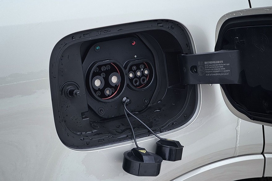 Неужели у китайцев постепенно входит в моду скромность? Вот и новая версия внедорожника Tank 500 под названием Hi-Charge снаружи тоже ничем не отличается, скажем, от модификации Urban. Те же колёсные диски, такая же огромная решётка радиатора, запасное колесо на багажной двери… Только маленький шильдик Hi4-T на корме и два лючка выдают новинку – на заднем левом крыле расположена горловина бензобака, а на заднем правом – зарядный разъём GB/T.