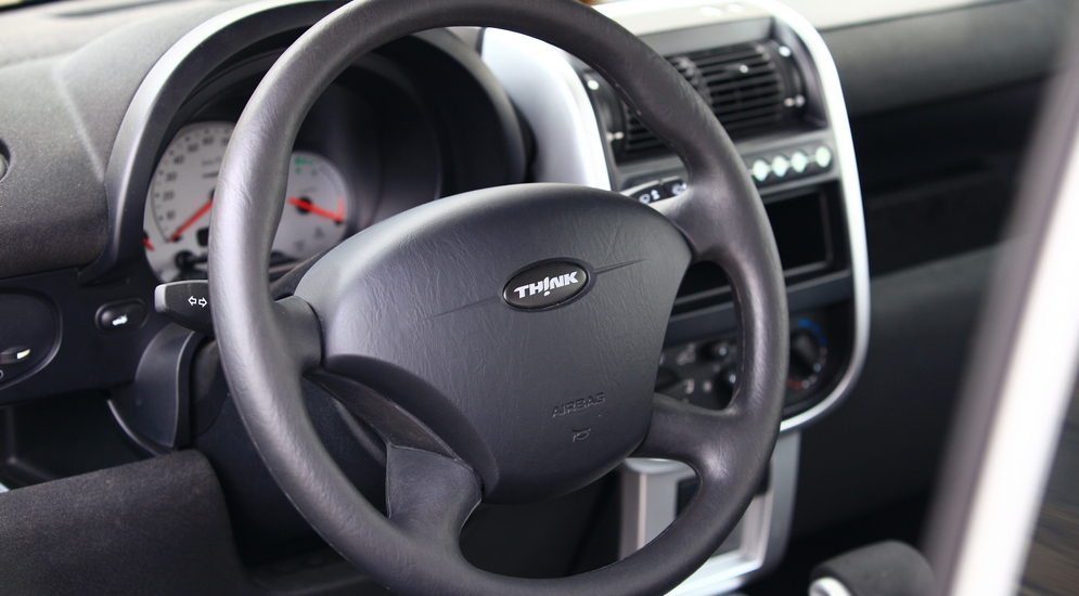 Стоит отметить, что сами разработчики Th!nk при создании City максимальный упор делали на то, чтобы водитель мог четко контролировать обстановку на дороге. Этому помогают большие зеркала заднего вида с электроприводами и пресловутая полностью прозрачная задняя дверь. Благодаря этому парковаться или перестраиваться на маленьком электромобиле очень просто, а при необходимости малые габариты позволяют развернуть машину на любом пятачке. Кстати, при активной рулежке самый громкий звук, издаваемый электромобилем – шум от привода усилителя руля. Несмотря на небольшие габариты машины, рулевое колесо не пустое и позволяет осознанно ввинчивать авто в любые повороты.