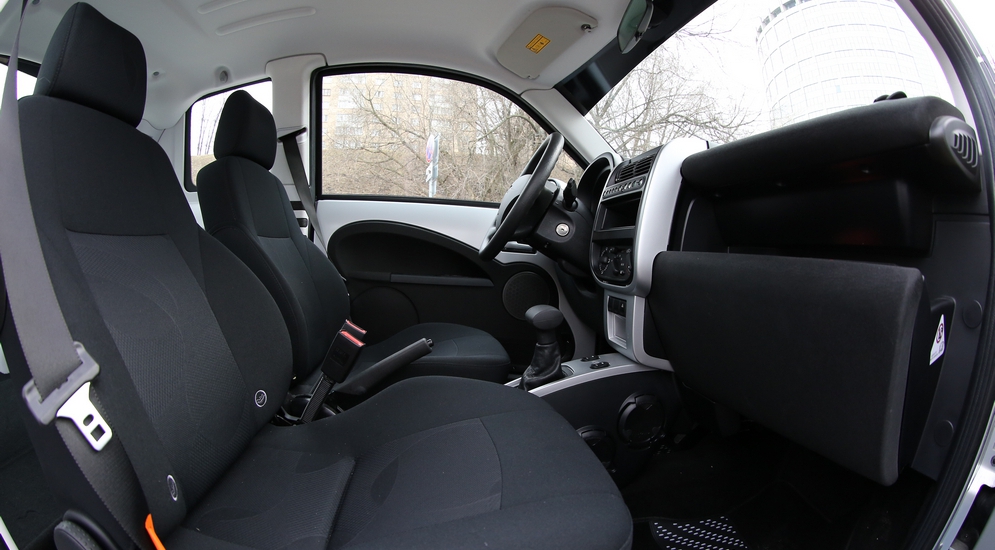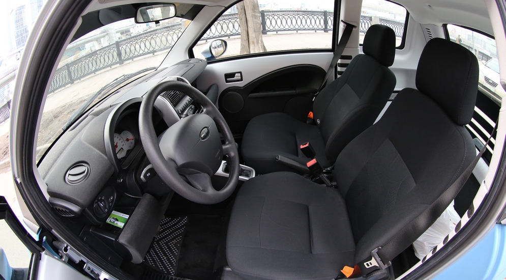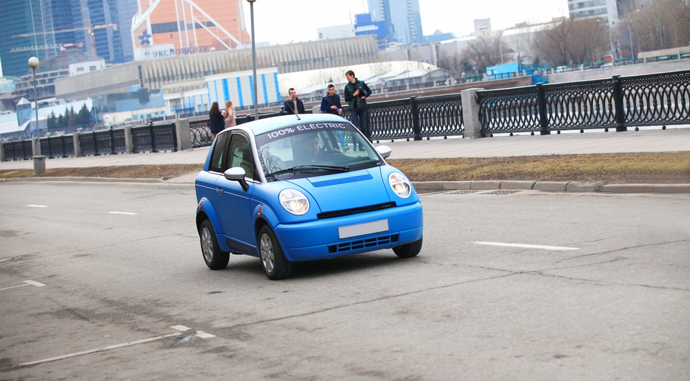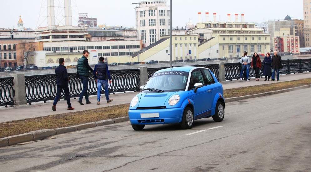 На неровностях российских дорог автомобильчик потряхивает, но не сильно – сказывается влияние рамы, которая первой воспринимает все нагрузки и гасит часть колебаний. Благодаря размещенной в середине базы 300-килограммовой батарее удалось добиться низкого центра тяжести и грамотного распределения массы автомобиля по осям. Разгоняется машина мирно и спокойно, однако если выжать отзывчивую педаль газа почти до упора, тяга 33-киловатного асинхронного электромотора позволяет под нарастающий свист несуществующих турбин мгновенно пришпорить 1,3-тонную машинку.