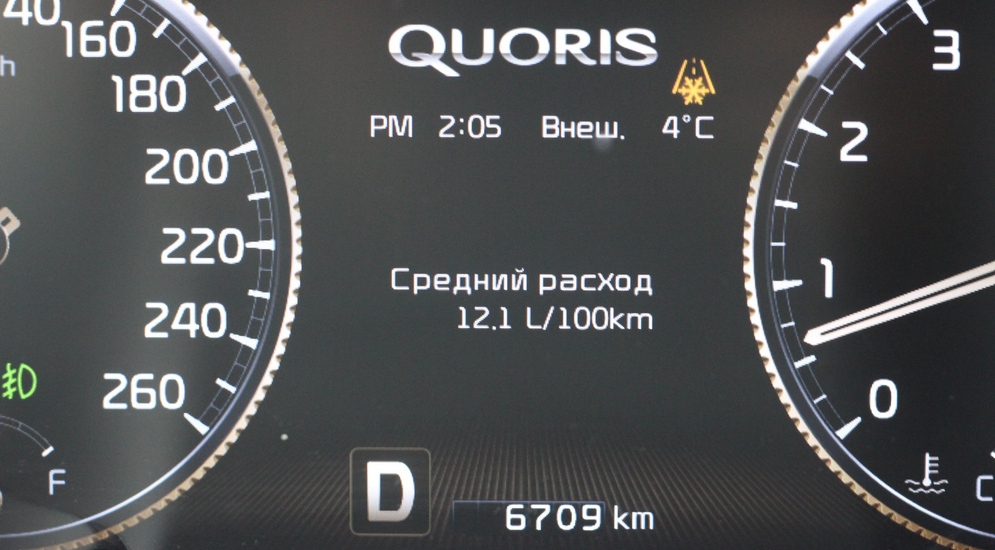 В Кворисе сразу же чувствуется наличие «шестерки» под капотом: и подхват совершенно иной, и звучит двигатель бархатисто, хоть и очень приглушенно. Но на разгоне сказывается более чем двухтонный вес: после продавливания акселератора, мотор сначала словно собирается с силами и только потом показывает свой потенциал. Причем sport-режим 8-ступенчатой автоматической трансмиссии — «игрушка»: разница мало ощутима. Но это единственное, за что можно упрекнуть трансмиссию.