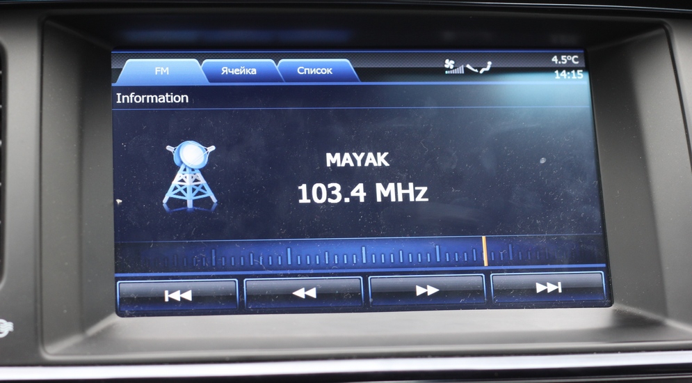 Большой центральный дисплей выдаёт массу информации: навигационною карту, картинку с камер кругового обзора, само собой, всю бортовую информацию и, конечно, имеет возможность проигрывать видео. Зато звучание продвинутой акустики Lexicon – так себе.