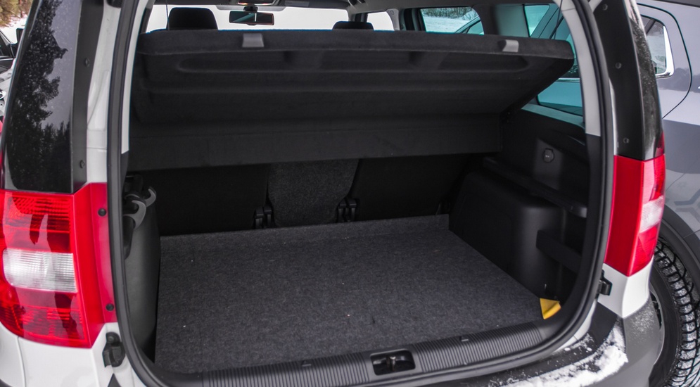 Второй по объёму – Skoda Yeti. Главной особенностью чешского кроссовера является второй ряд, три части которого можно регулировать отдельно, меняя наклон спинки или двигая сиденья вперед-назад. Именно от выбранного положения задних кресел зависит простор в салоне или в багажнике.