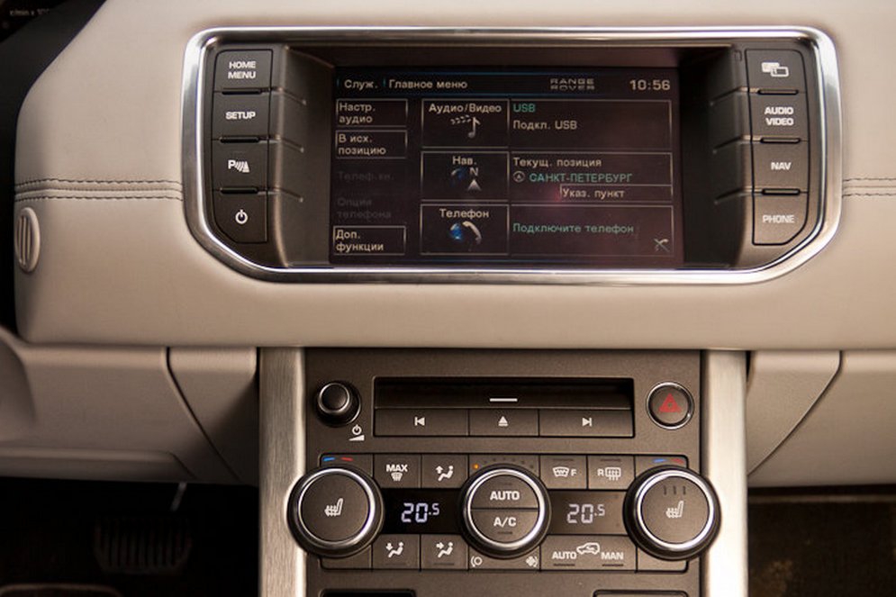 Описывать салон самого компактного Evoque без хвалебных эпитетов тоже не удастся. Просто посмотрите на фотографии салона Land Rover Freelander и порадуйтесь за владельцев Evoque. Особенно в дорогих исполнениях, с коричневой или светлой кожей интерьер выглядит безупречно, да и тактильно претензий никаких. Классно спрофилированные передние сиденья, многокнопочный руль с подрулевыми лепестками, меняющие подсветку приборы в зависимости от режима трансмиссии, удобный подлокотник-тоннель с шайбой КПП, пультом климат-контроля и врезанный в переднюю панель сенсорный дисплей мультимедийной системы с навигацией и камерой заднего вида… Владельцев премиумных авто здесь удивить нечем, зато неискушенные дорогими качественными автомобилями будут в восторге.