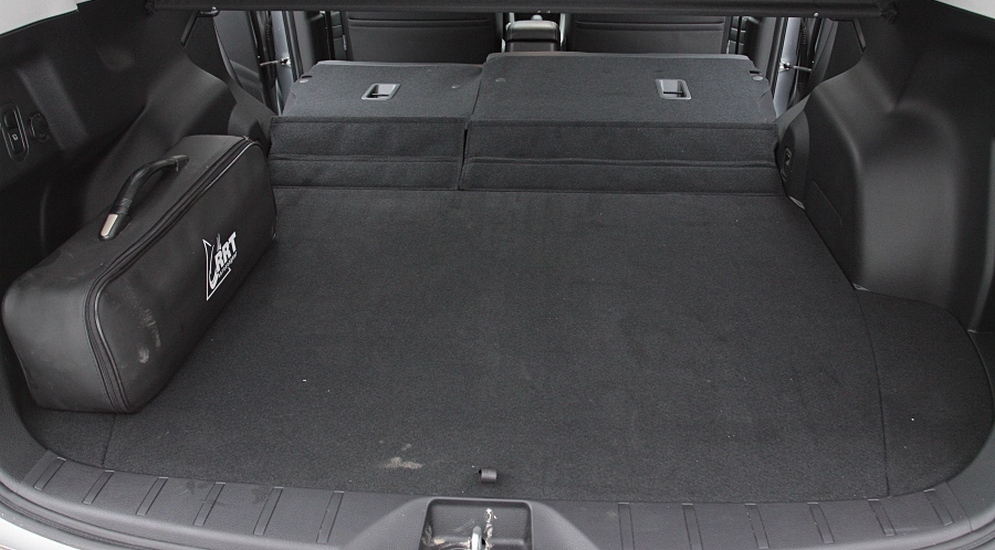 Объем багажника при установленных задних сиденьях составляет 505 л, при сложенных – достигает 1 577 л. Сами сиденья складываются легко: нужно либо отпустить фиксаторы в спинках, либо нажать кнопку в багажнике. Под фальшполом – докатка, которая, впрочем, не сильно меньше штатного колеса.